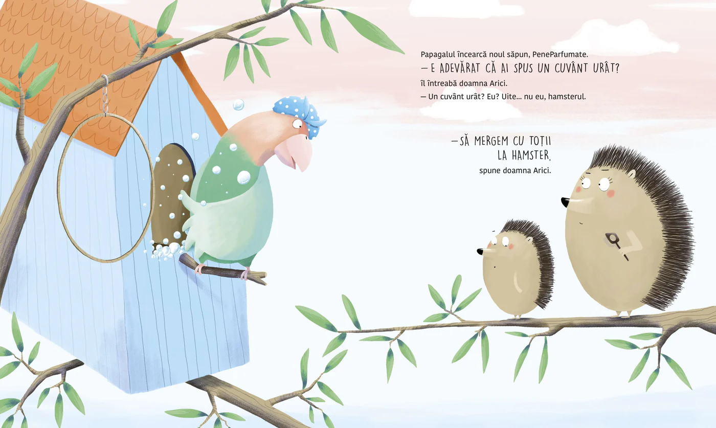 O poveste amuzantă și educativă despre importanța cuvintelor și despre felul în care acestea pot influența pe cei din jur. Micul Arici a auzit un cuvânt urât, iar Doamna Arici decide să afle cine l-a spus.