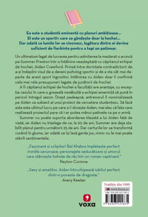 Un ultimatum legat de lucrarea pentru admiterea la masterat o aruncă pe Summer Preston într-o întâlnire neașteptată cu căpitanul echipei de hochei, Aiden Crawford. Prinsă între dorințele contradictorii de a-și îndeplini visul de a deveni psiholog sportiv și de a sta cât mai departe de acest sport îngrozitor, întâlnirea cu Aiden doar îi confirmă cele mai rele presupuneri legate de jucătorii de hochei.