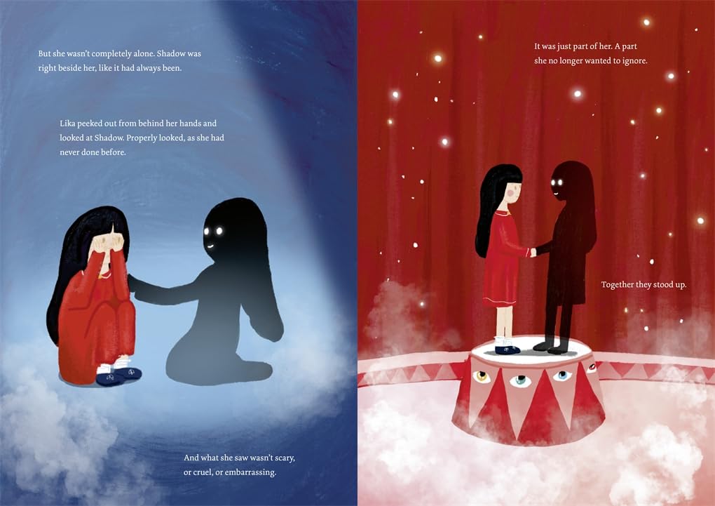 Until one day it begins acting strangely. When Lika waves a hand, Shadow raises a foot. When Lika sits down, Shadow stands up. Lika hides in a darkened room, but the more she hides, the bigger Shadow becomes, until it picks her up and deposits her in a land of shadows, at the heart of which is a terrifying shadow circus. Lika must learn to listen to her shadow to find her way back.