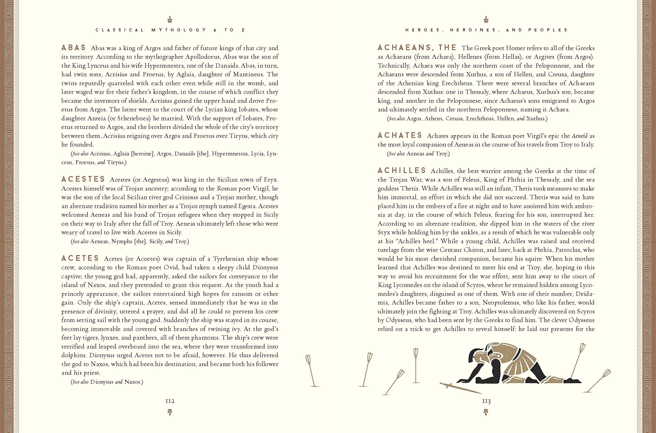 From the gods and goddesses of Mount Olympus, to the heroes of the Trojan War, to the nymphs, monsters, and other mythical creatures that populate these ancient stories, Giesecke recounts, with clarity and energy, the details of more than 700 characters and places. Each definition includes cross-references to related characters, locations, and myths, as well their equivalent in Roman mythology and cult.