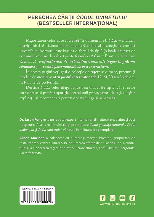 Dr. Jason Fung este un reputat expert internațional în obezitate, diabet și post terapeutic. A scris mai multe cărți, printre care Codul greutății corporale, Codul diabetului și Codul cancerului, vândute în milioane de exemplare.