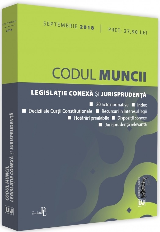 Lucrarea Codul muncii, legislatie conexa si jurisprudenta: septembrie 2018 (ediția a 5-a) contine, pe langa textul actualizat al Codului: Legea dialogului social nr. 62/2011, un extras din Constitutia Romaniei, decizii ale Curtii Constitutionale, recursuri in interesul legii, hotarari prealabile, jurisprudenta relevanta si acte normative conexe importante, inclusiv legile care reglementeaza activitatea de telemunca, respectiv internshipul.