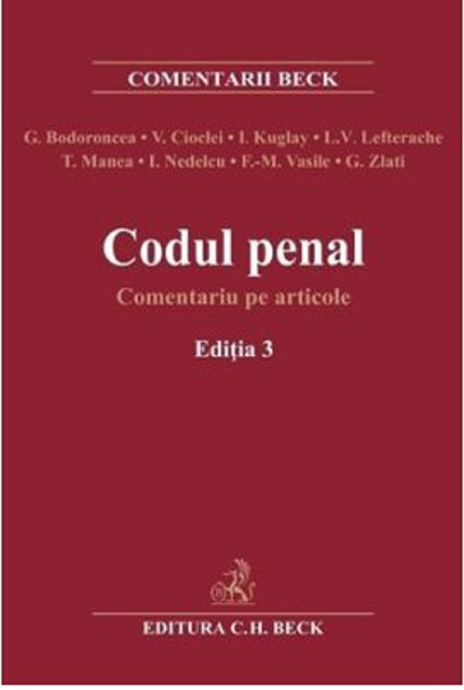 Lucrarea, integrată în Colecția Comentarii, are drept punct de plecare textul noului Cod penal și al Legii de punere în aplicare a acestuia și oferă cititorului informația necesară pentru a putea înțelege, interpreta și aplica noua legislație penală. Este realizată o explicare aprofundată a textelor noului Cod penal și o adnotare selectivă cu exemple jurisprudențiale. Explicațiile semnalează aspectele de continuitate, dar se concentrează asupra textelor modificate sau nou introduse, marcând, în primul rând, originea și rațiunea acestora. Punctual, sunt semnalate deficiențele unor texte sau problemele de interpretare pe care acestea le ridică și se propun soluții. Problemele ridicate de aplicarea în timp a legii penale sunt și ele avute în vedere. Adnotările reflectă măsura în care soluțiile privind probleme importante, de regulă controversate, din practica judiciară, își mențin sau nu actualitatea. Această componentă este în mod voit redusă la aspectele esențiale, deoarece trebuie să permită dezvoltarea lucrării în edițiile viitoare prin adăugarea jurisprudenței semnificative.