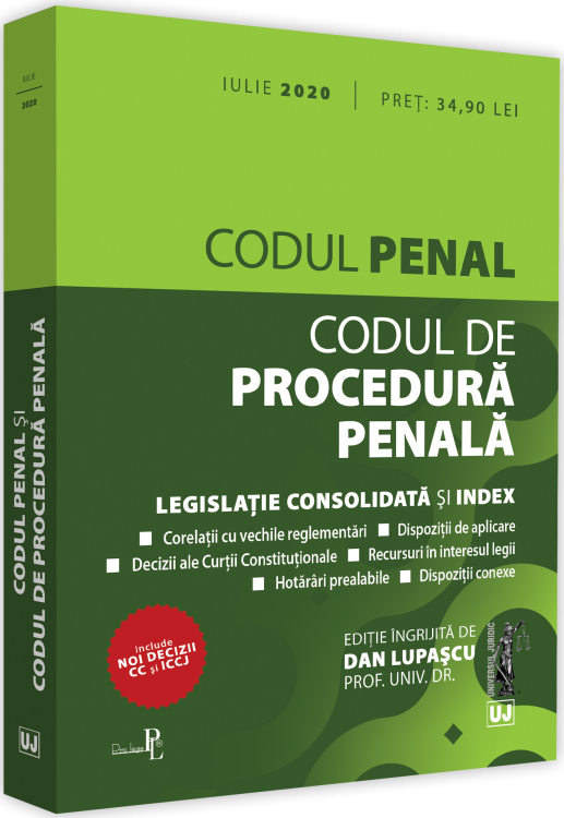 Editia a 16-a a lucrarii Codul penal si Codul de procedura penala (iulie 2020), tiparita pe hartie alba de calitate superioara si ingrijita de prof. univ. dr. Dan Lupascu, cuprinde Codul penal si Codul de procedura penala actualizate (cu noi decizii CC și ICCJ), articolele celor doua Coduri fiind insotite, acolo unde este cazul, de dispozitii tranzitorii, de aplicare sau conexe, necesare unei depline intelegeri a reglementarii.