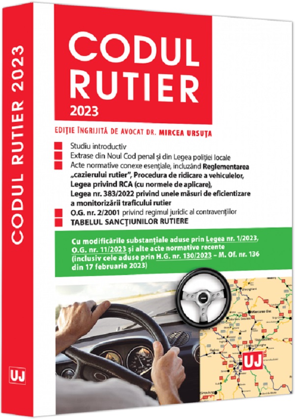Acte normative conexe esentiale, incluzand Reglementarea „cazierului rutier”, Procedura de ridicare a vehiculelor, Legea privind RCA (cu normele de aplicare), Legea nr. 383/2022 privind unele masuri de eficientizare a monitorizarii traficului rutier