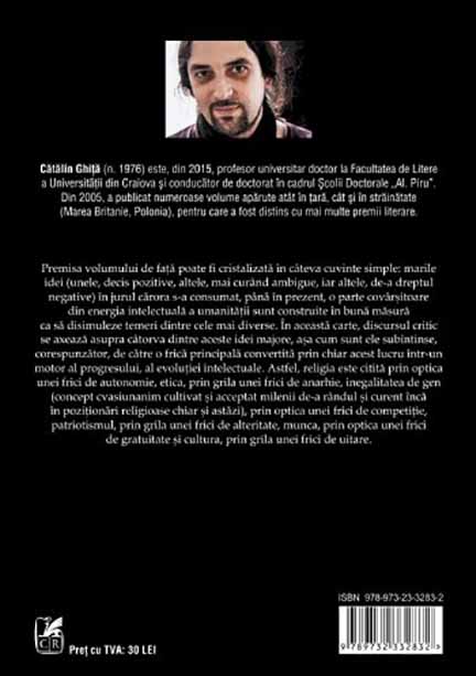 Premisa volumului poate fi cristalizată în câteva cuvinte simple: marile idei (unele, decis pozitive, altele, mai curând ambigue, iar altele, de-a dreptul negative) în jurul cărora s-a consumat, până în prezent, o parte covârşitoare din energia intelectuală a umanităţii sunt construite în bună măsură ca să disimuleze temeri dintre cele mai diverse. În această carte, discursul critic se axează asupra câtorva dintre aceste idei majore, aşa cum sunt ele subîntinse, corespunzător, de către o frică principală convertită prin chiar acest lucru într-un motor al progresului, al evoluţiei intelectuale. Astfel, religia este citită prin optica unei frici de autonomie, etica, prin grila unei frici de anarhie, inegalitatea de gen (concept cvasiunanim cultivat şi acceptat milenii de-a rândul şi curent încă în poziţionări religioase chiar şi astăzi), prin optica unei frici de competiţie, patriotismul, prin grila unei frici de alteritate, munca, prin optica unei frici de gratuitate şi cultura, prin grila unei frici de uitare.