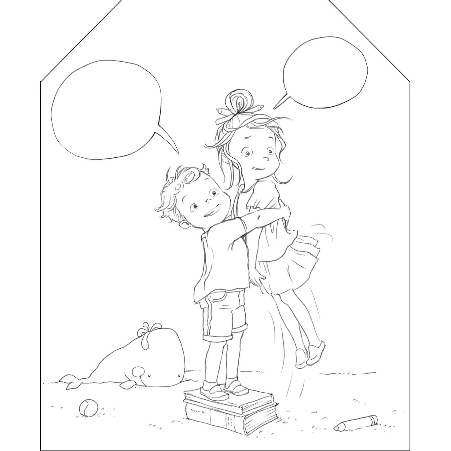 Cei care stiu sa scrie pot completa bulele de langa personaje cu dialoguri imaginate de ei. Pe cei mai mici indrumati-i sa le completeze cu desene sugestive.