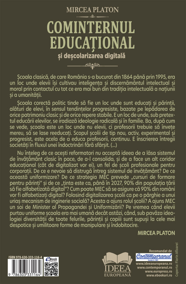 (…) Nu înțeleg de ce acești reformatori nu acceptă ideea de a lăsa sistemul de învățământ clasic în pace, de a-l consolida și de a face un alt coridor educațional (cât de digitalizat vor ei), un fel de școli profesionale pentru corporații.