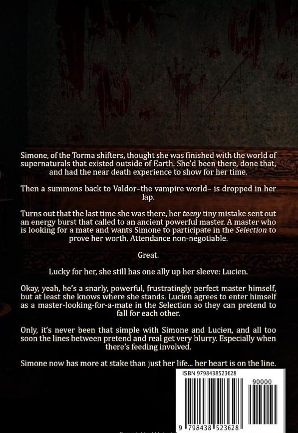 Turns out that the last time she was there, her teeny tiny mistake sent out an energy burst that called to an ancient powerful master. A master who is looking for a mate and wants Simone to participate in the Selection to prove her worth. Attendance non-negotiable.