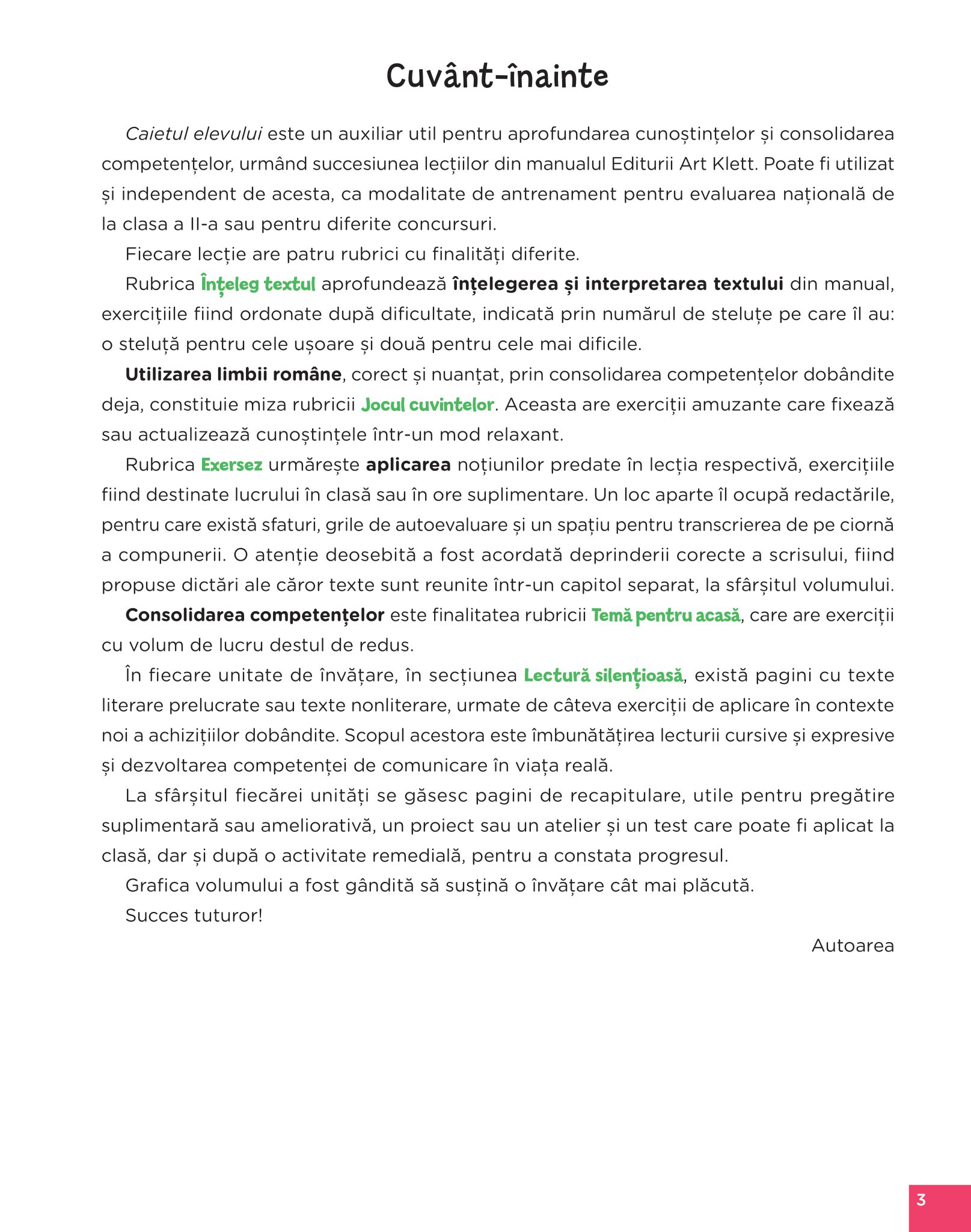 Lucrarea este realizată în conformitate cu programa şcolară în vigoare aprobată de Ministerul Educaţiei Naţionale prin ordinul nr. 3418 din 19.03.2013. Comunicare în limba română. Caiet de lucru pentru clasa a II-a.