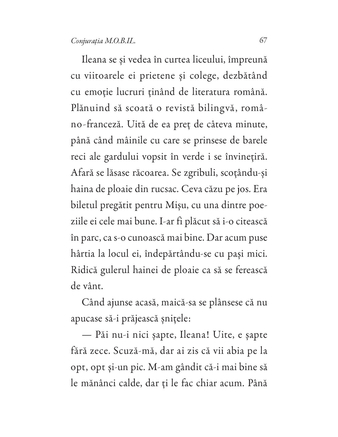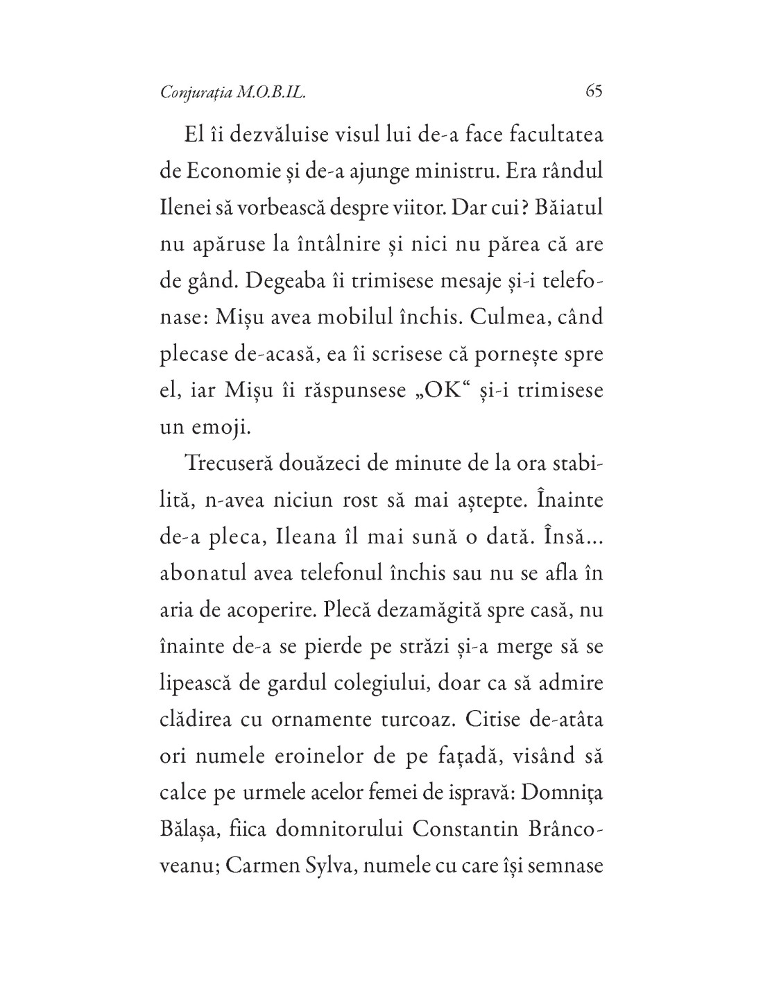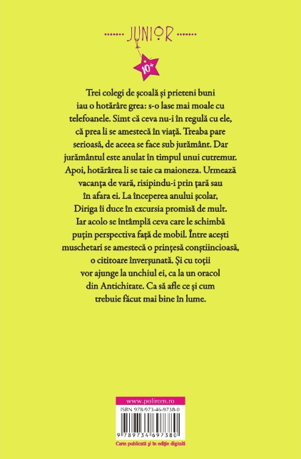 Apoi, hotărârea li se taie ca maioneza. Urmează vacanţa de vară, risipindu-i prin ţară sau în afara ei. La începerea anului școlar, Diriga îi duce în excursia promisă de mult. Iar acolo se întâmplă ceva care le schimbă puţin perspectiva faţă de mobil. Între acești muschetari se amestecă o prinţesă conștiincioasă, o cititoare înverșunată. Și cu toţii vor ajunge la unchiul ei, ca la un oracol din Antichitate.
