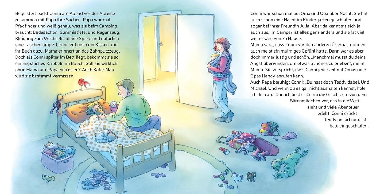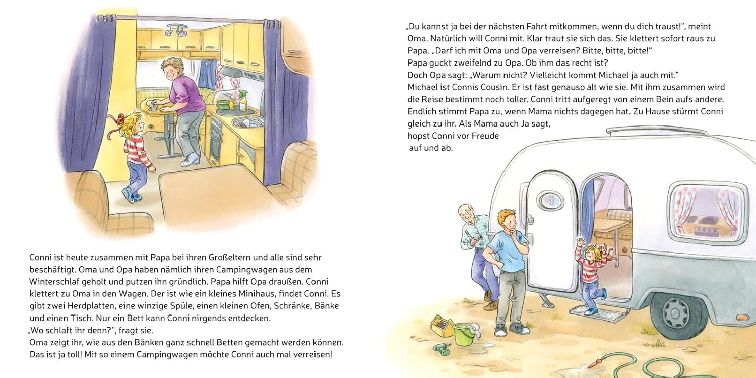 Conni verreist mit Oma, Opa und ihrem Cousin Michi. Und zwar im Camper – wie aufregend! Conni freut sich riesig, aber ihr ist auch etwas mulmig. Unterwegs lernt sie, dass wir alle manchmal Angst haben und man sich trotzdem etwas zutrauen kann. Doch Conni versteht auch, dass unsere Ängste ein gutes Warnsystem sind und wir nicht jede Mutprobe mitmachen müssen. Denn manchmal ist auch das Neinsagen ein Zeichen von Mut!