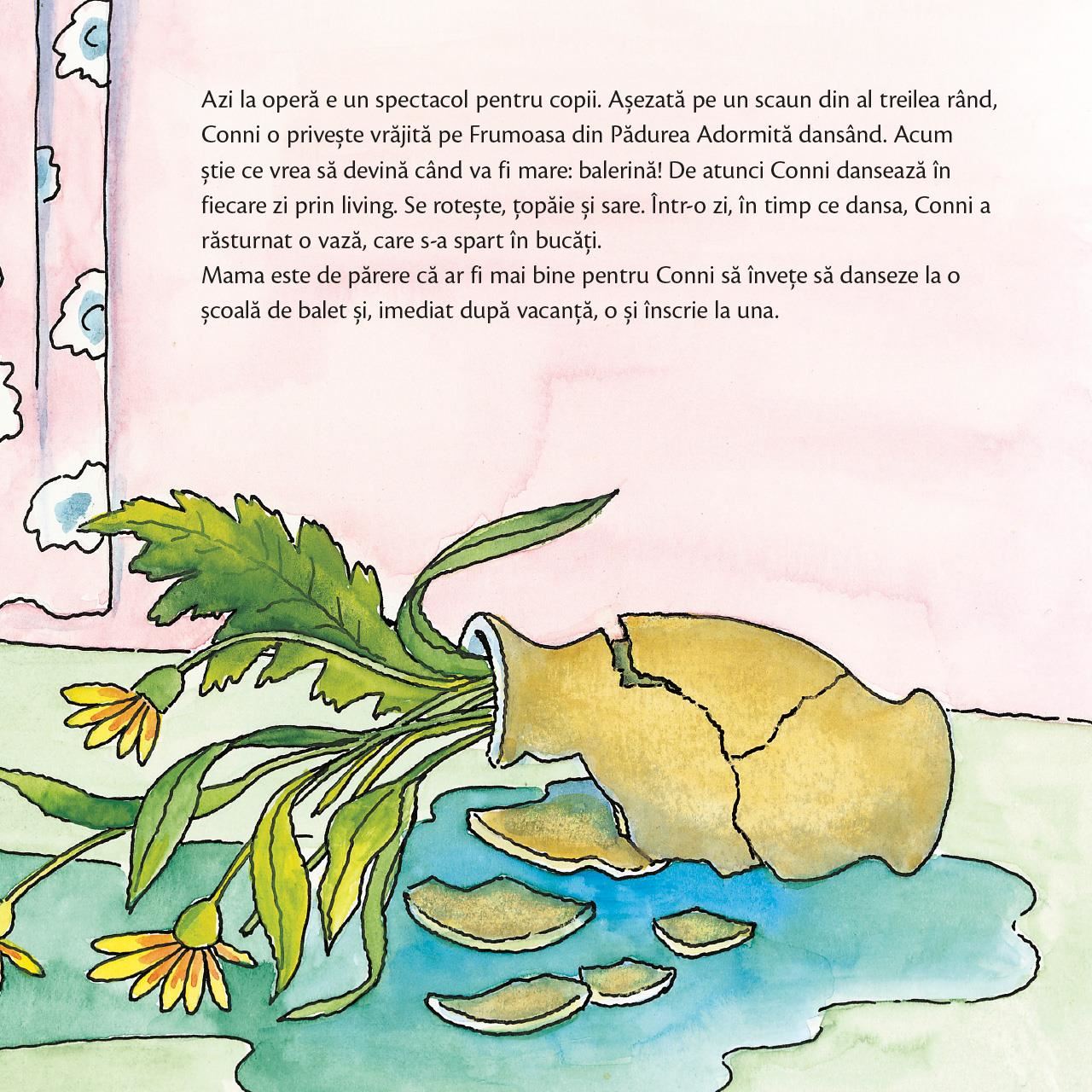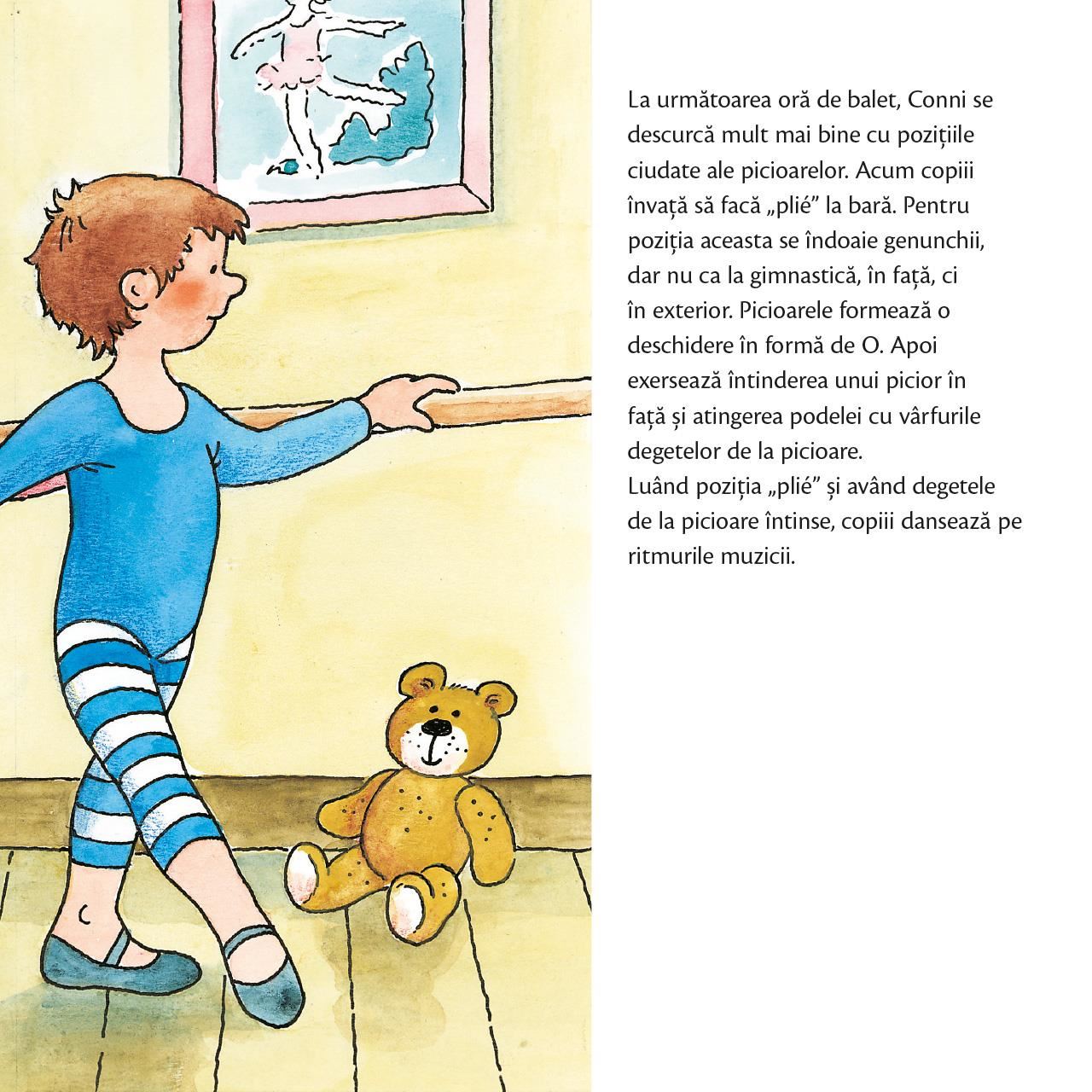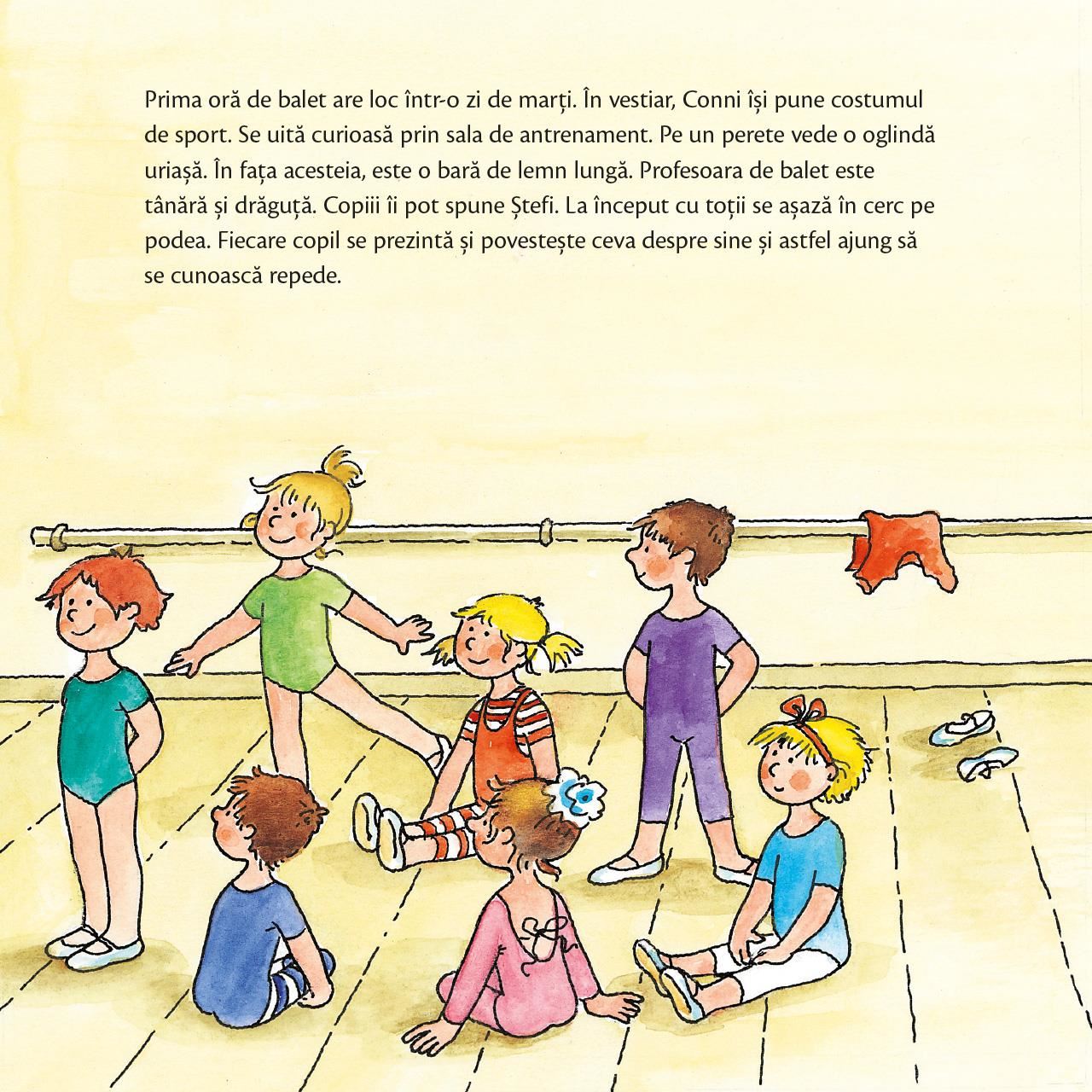 Conni ia lecții de balet. Este foarte amuzant să dansezi cu ceilalți copii pe vârfurile degetelor de la picioare, să salți ca o pisică și să te miști pe muzică. Și, în cele din urmă, Conni își face apariția pe o scenă adevărată cu mulți spectatori unde interpretează dansul unui fulg de nea…