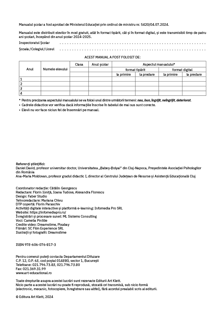 Acest manual școlar este realizat în conformitate cu Programa școlară aprobată prin Ordinul ministrului educației naționale nr. 3393/28.02.2017.