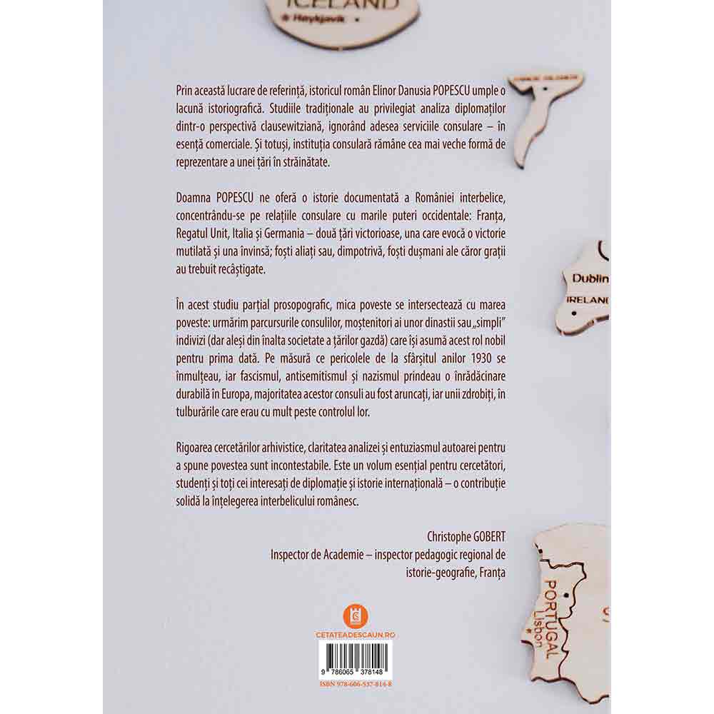 Prin această lucrare de referință, istoricul român Elinor Danusia POPESCU umple o lacună istoriografică. Studiile tradiționale au privilegiat analiza diplomaților dintr-o perspectivă clausewitziană, ignorând adesea serviciile consulare – în esență comerciale. Și totuși, instituția consulară rămâne cea mai veche formă de reprezentare a unei țări în străinătate.