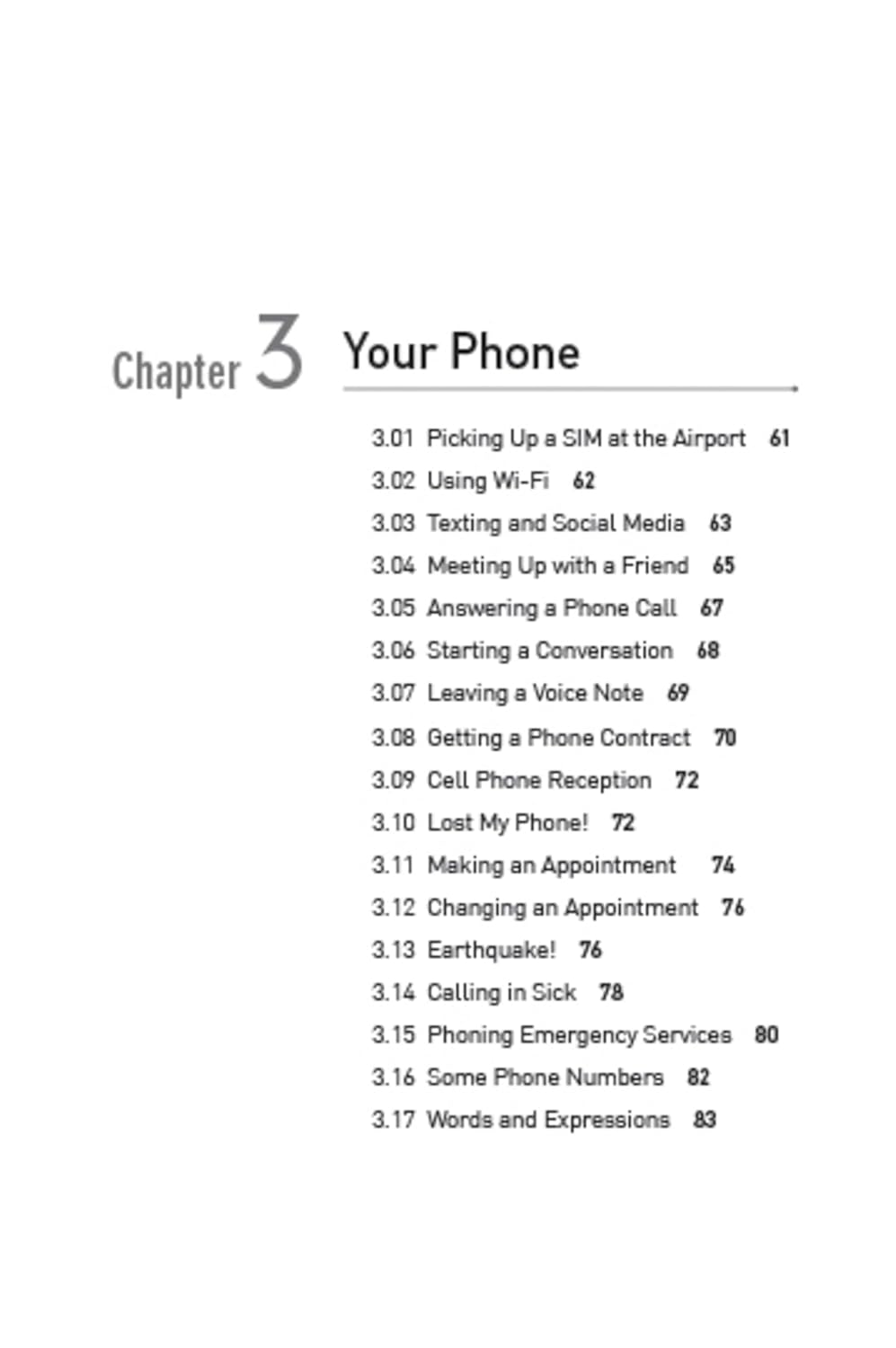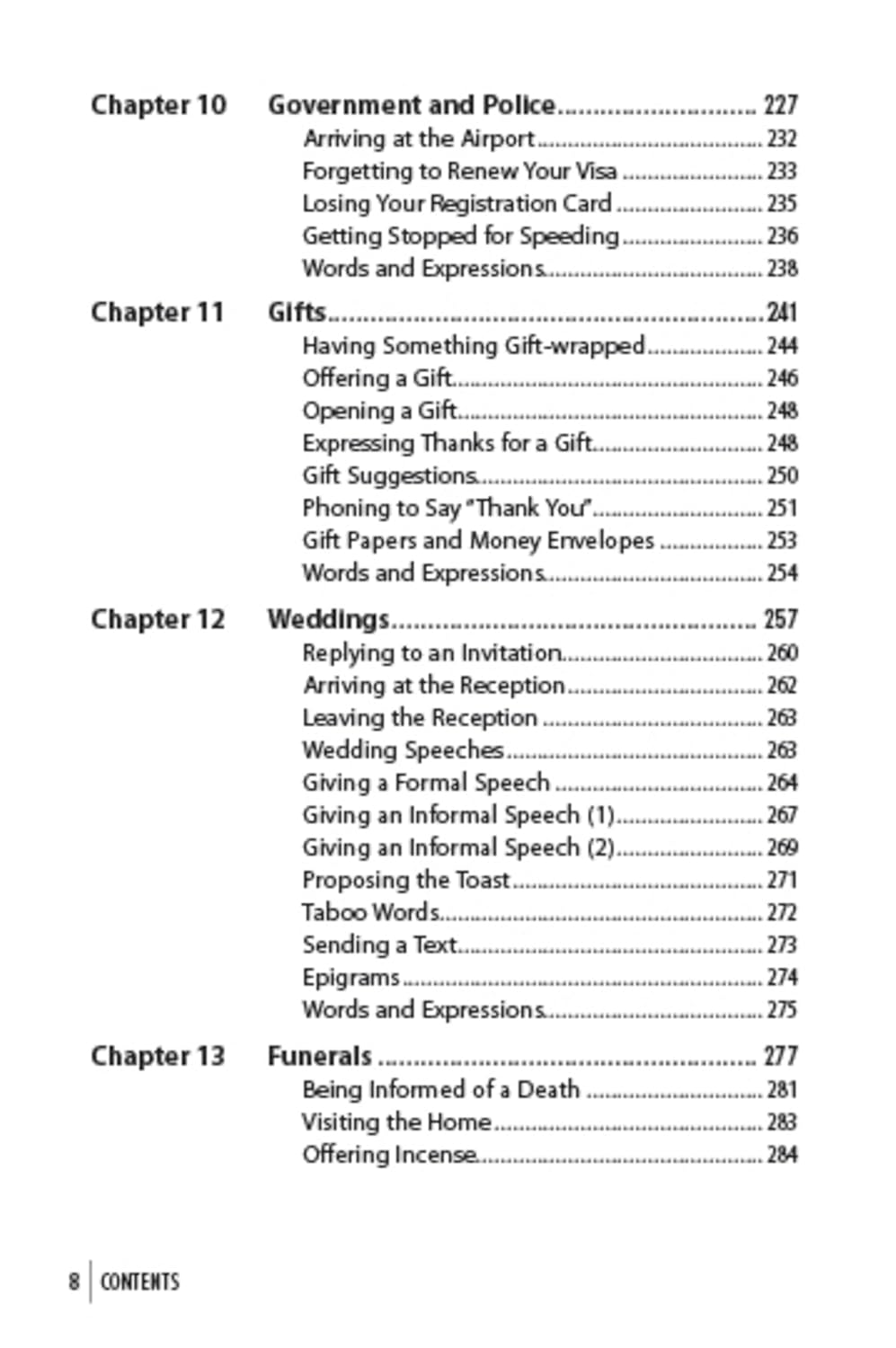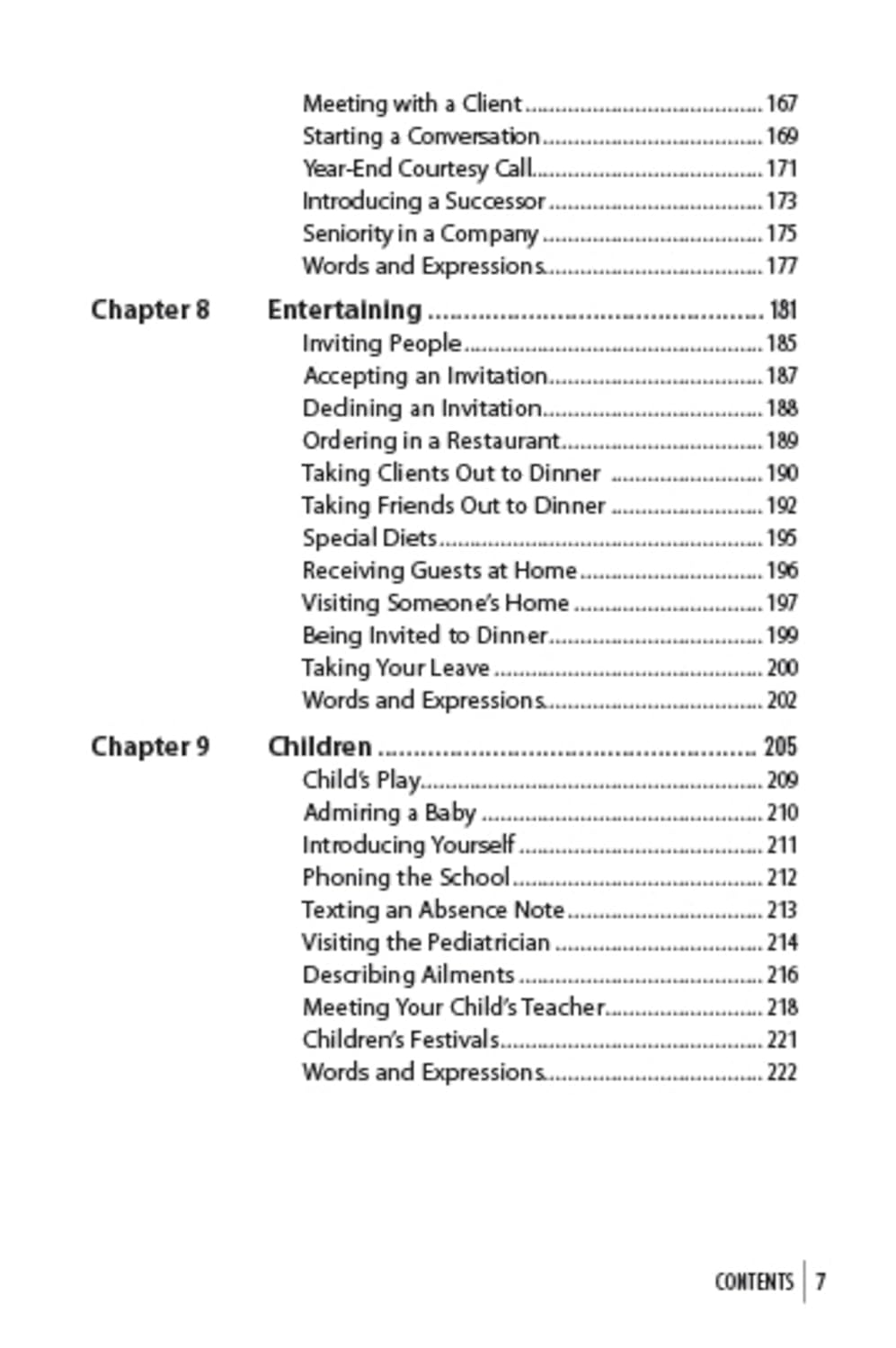 Each chapter begins with a brief introduction and dialogue providing words and phrases you actually need to manage a range of daily tasks—from meeting people to shopping, getting around, sightseeing, visiting clients or booking a restaurant. Other situations covered in this book include: