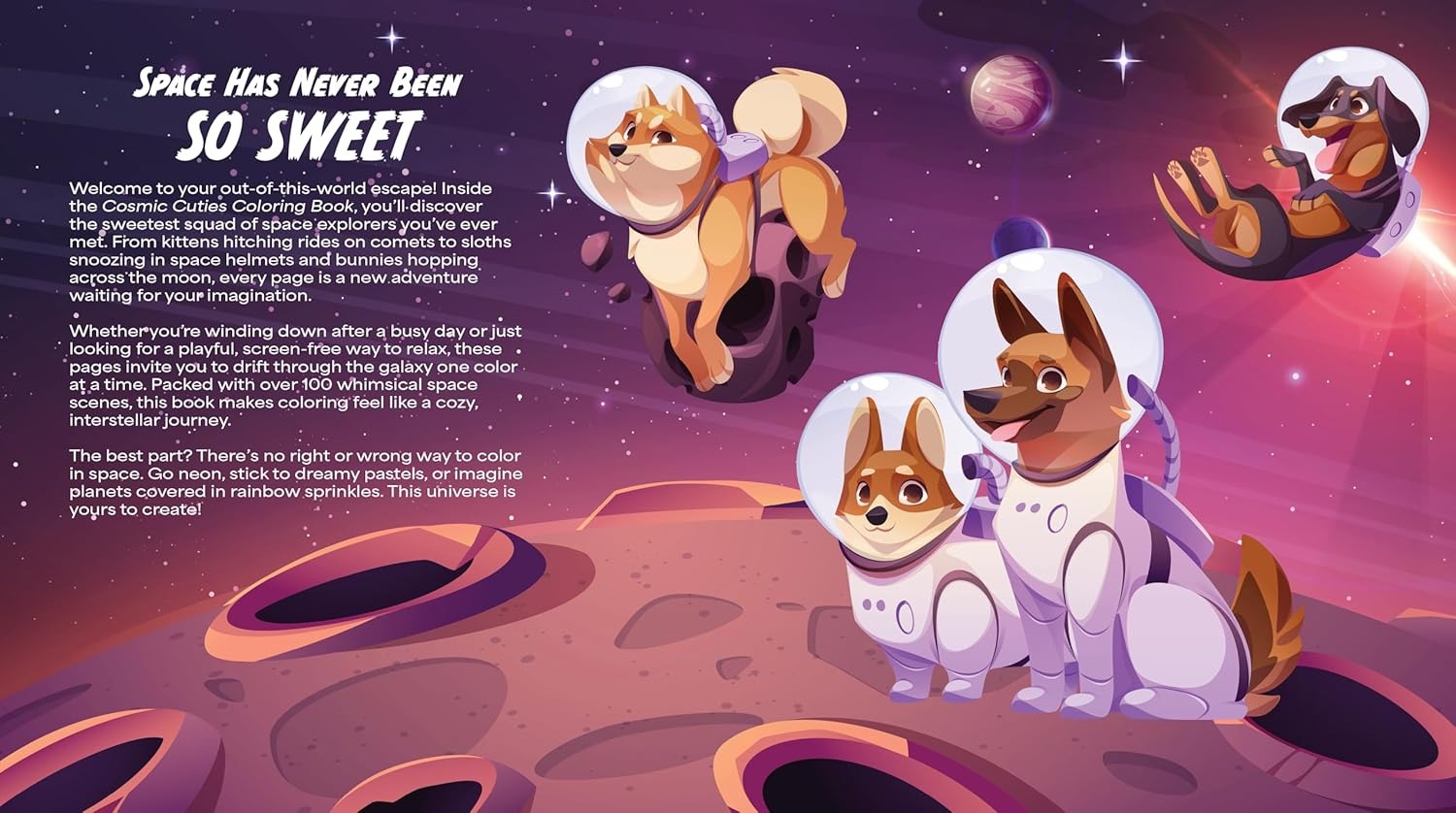 No matter your age or skill level, this book offers a gentle creative escape—one coloring page at a time. So cozy up with your markers, grab a snack from Mission Control, and let your imagination blast off. Because in this universe? Cuties come with jetpacks.