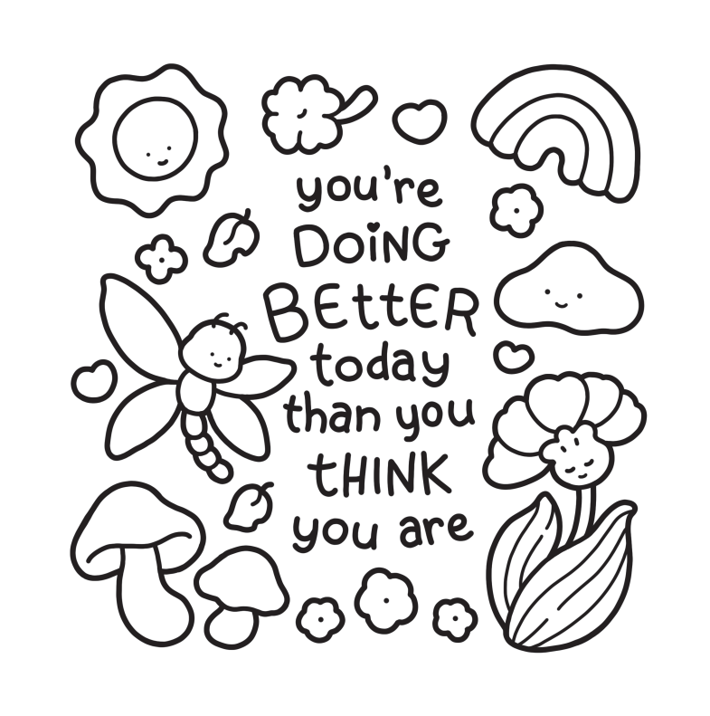 Uncover a treasure trove of uplifting phrases accompanying adorable animal friends for you to colour in within these cute and simple pages!