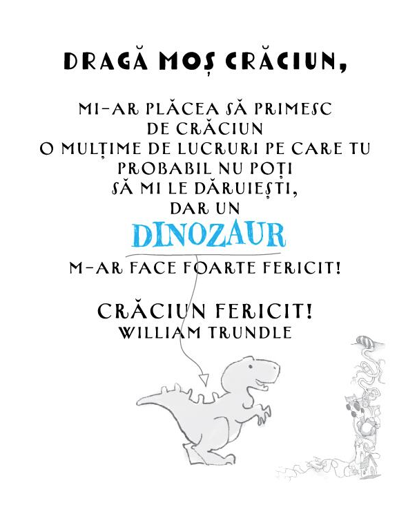 Pornește într-o aventură crăciunomagică alături de William Trundle, un băiețel deștept și mare iubitor de dinozauri, tatăl lui, Bob Trundle, Brenda Payne, cea mai rea fată din școală, Moș Crăciun (da, da, chiar el!), un personaj bizar pe nume Vânătorul și un dinozaur cu totul și cu totul special.