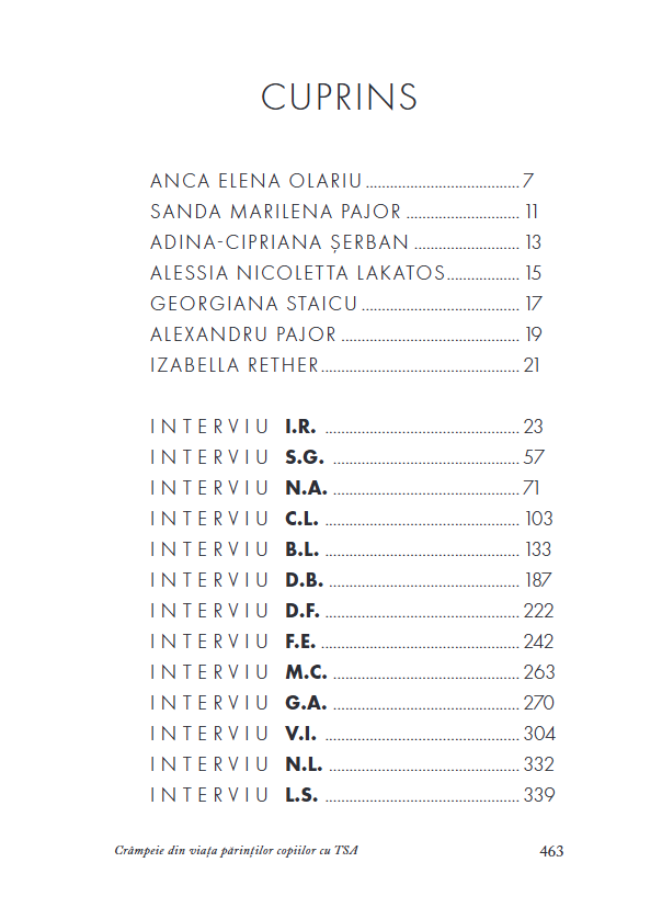 Crampeie din viata parintilor copiilor cu TSA aduna marturii reale ale unor parinti care au trecut prin socul diagnosticului, prin teama, vinovatie, neputinta si, in cele din urma, prin acceptare si reconstructie.