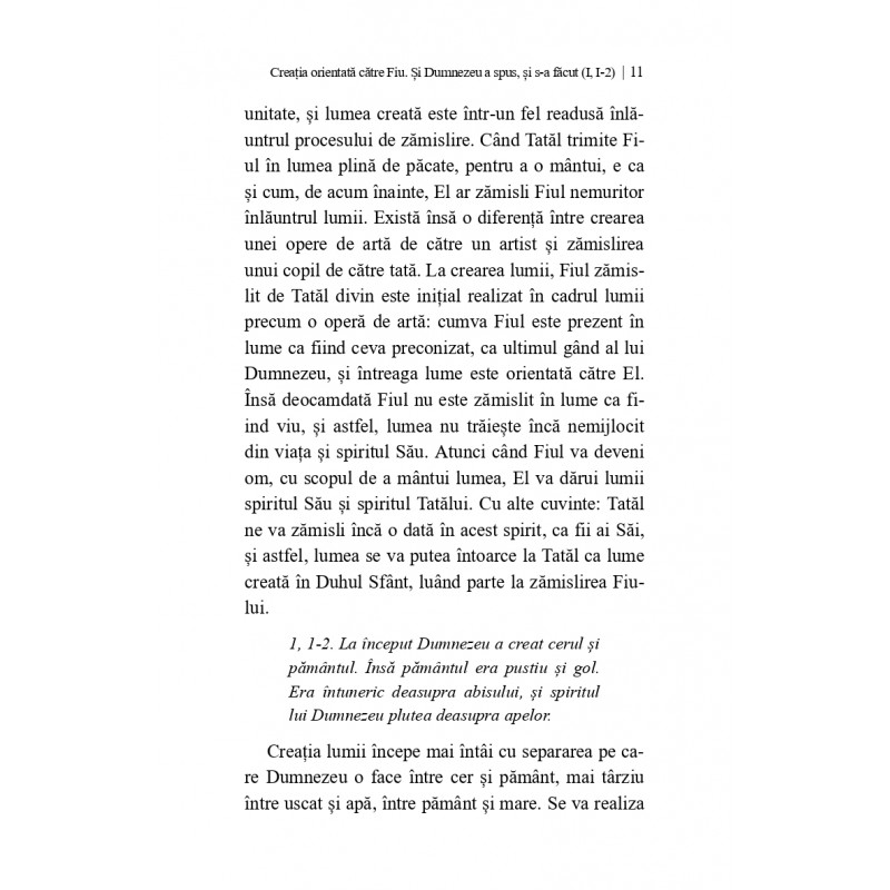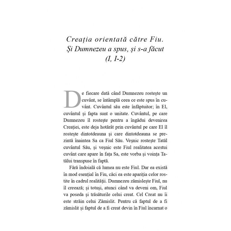 De fiecare dată când Dumnezeu rosteşte un cuvânt, se întâmplă ceea ce este spus în cuvânt. Cuvântul său este înfăptuitor; în El, cuvântul și fapta sunt o unitate. Cuvântul, pe care Dumnezeu îl r teşte pentru a îngădui devenirea Creaţiei, este deja hotărât prin cuvântul pe care El îl rosteşte dintotdeauna şi care dintotdeauna se prezintă înaintea Sa ca Fiul Său. Veşnic rosteşte Tatăl cuvântul Său, şi veşnic este Fiul realitatea acestui cuvânt care apare în faţa Sa, este vorba şi voinţa Tatălui transpuse în faptă.