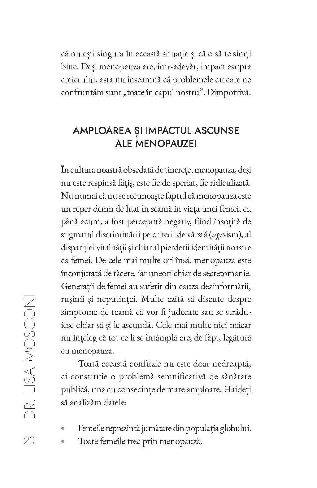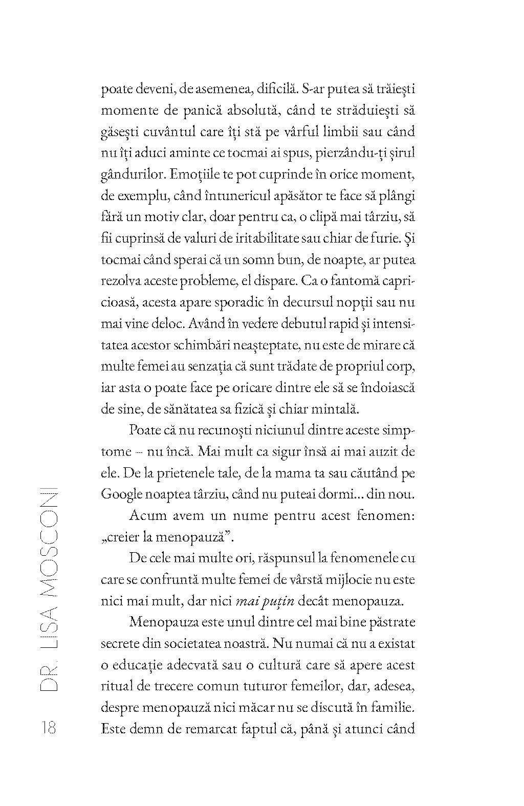 Cercetătoare de top în neuroștiințe, dr. Laura Mosconi explică aceste simptome pornind de la cauzele lor, arătând cum menopauza nu are un impact doar asupra ovarelor, ci este un spectacol hormonal complex în care creierul joacă rolul principal.