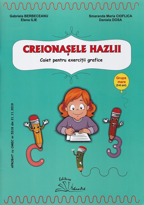 Caietul de lucru pentru prescolarii din grupa mare Creionasele hazlii, elaborata de un grup de educatoare, dedicate profesiei si copilului prescolar, ilustreaza din plin beneficiile mentionate anterior. In plus, materialul prezinta o macheta prietenoasa, adaptata nevoilor si intereselor copiilor prescolari si o paleta interesanta de mijloace prin care ii putem apropia pe prescolari de elementele de citit-scris.