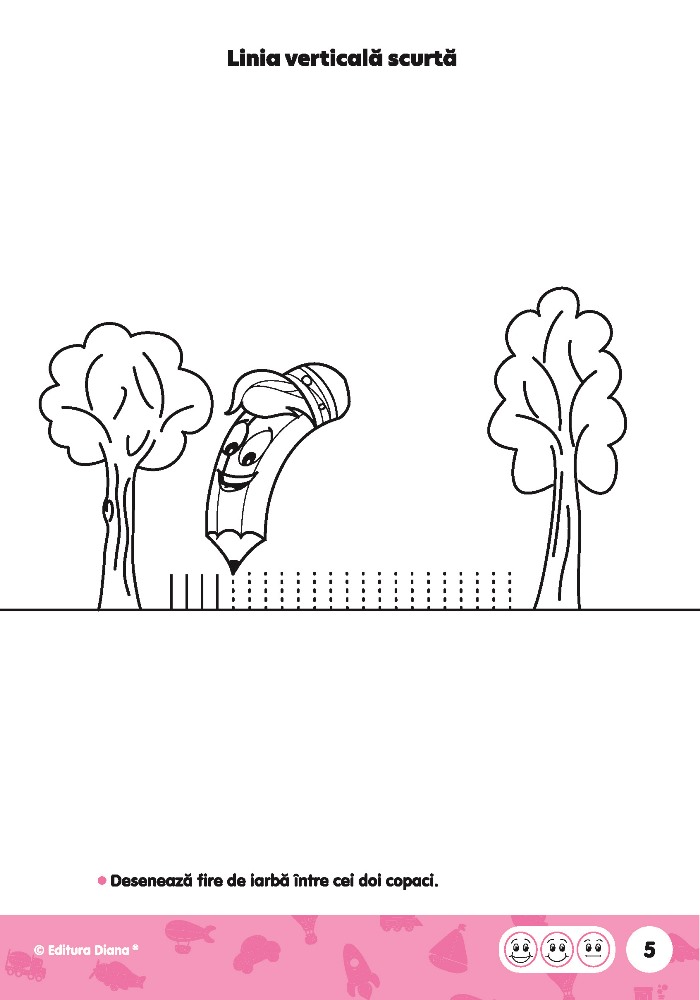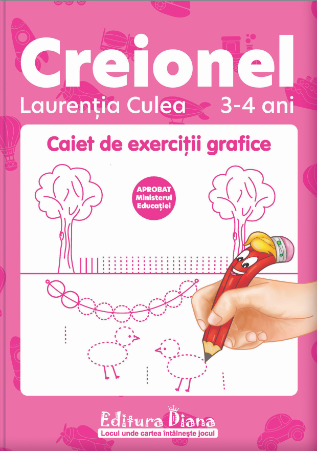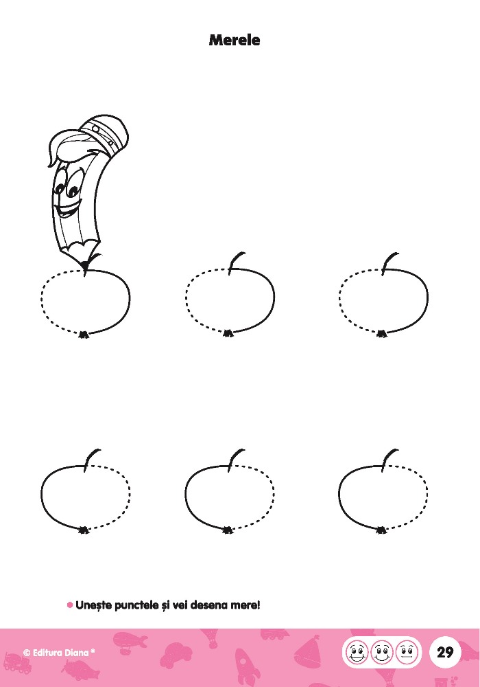 Este un caiet de grafisme pentru grupa mică. Ajută copilul la cunoașterea, înțelegerea și realizarea unor grafisme necesare scrierii literelor și a cifrelor. Contribuie la dezvoltarea mușchilor mici ai mâinii și îl stimulează pe copil să dobândească deprinderea de a trasa corect semnele grafice.
