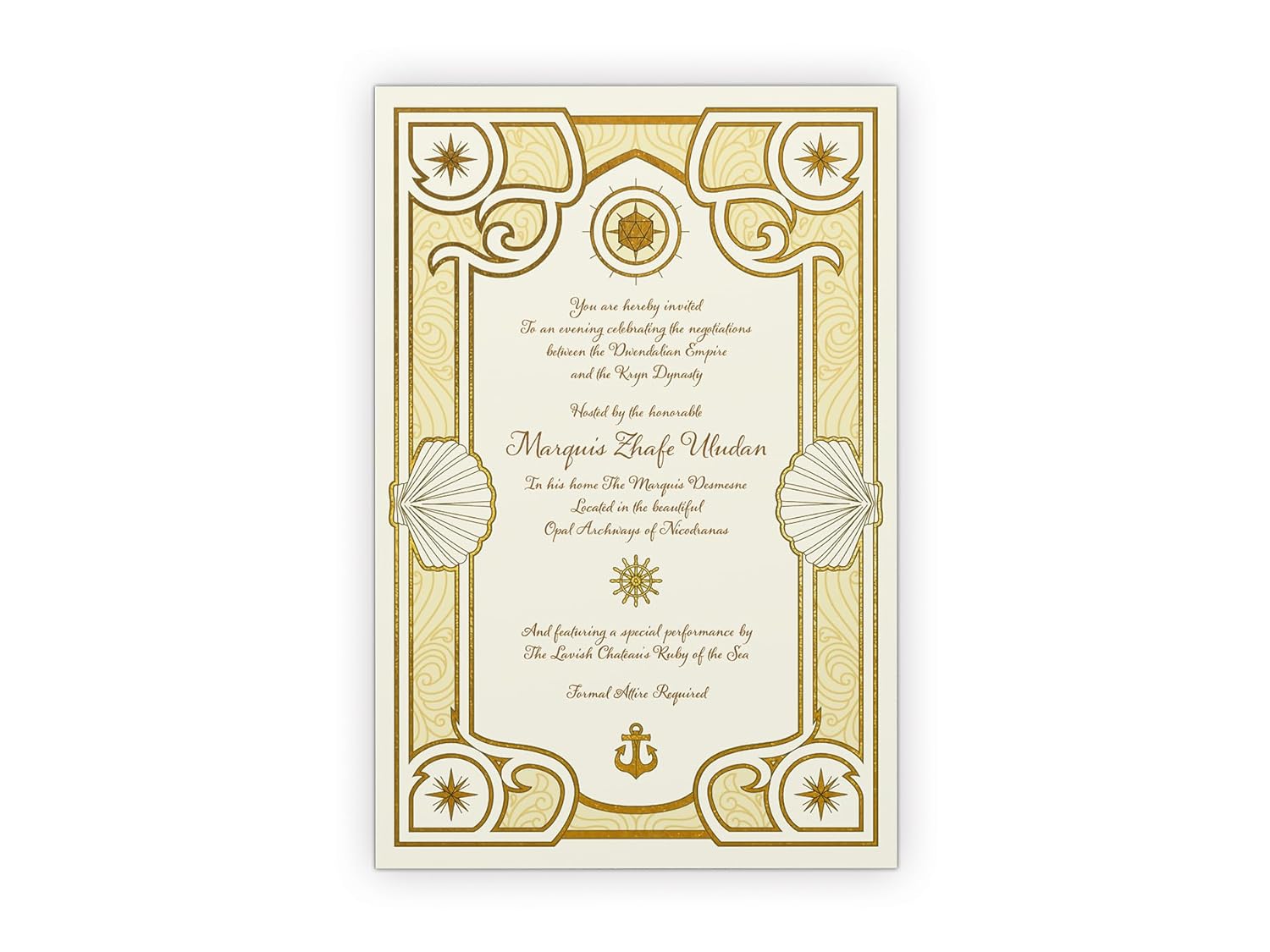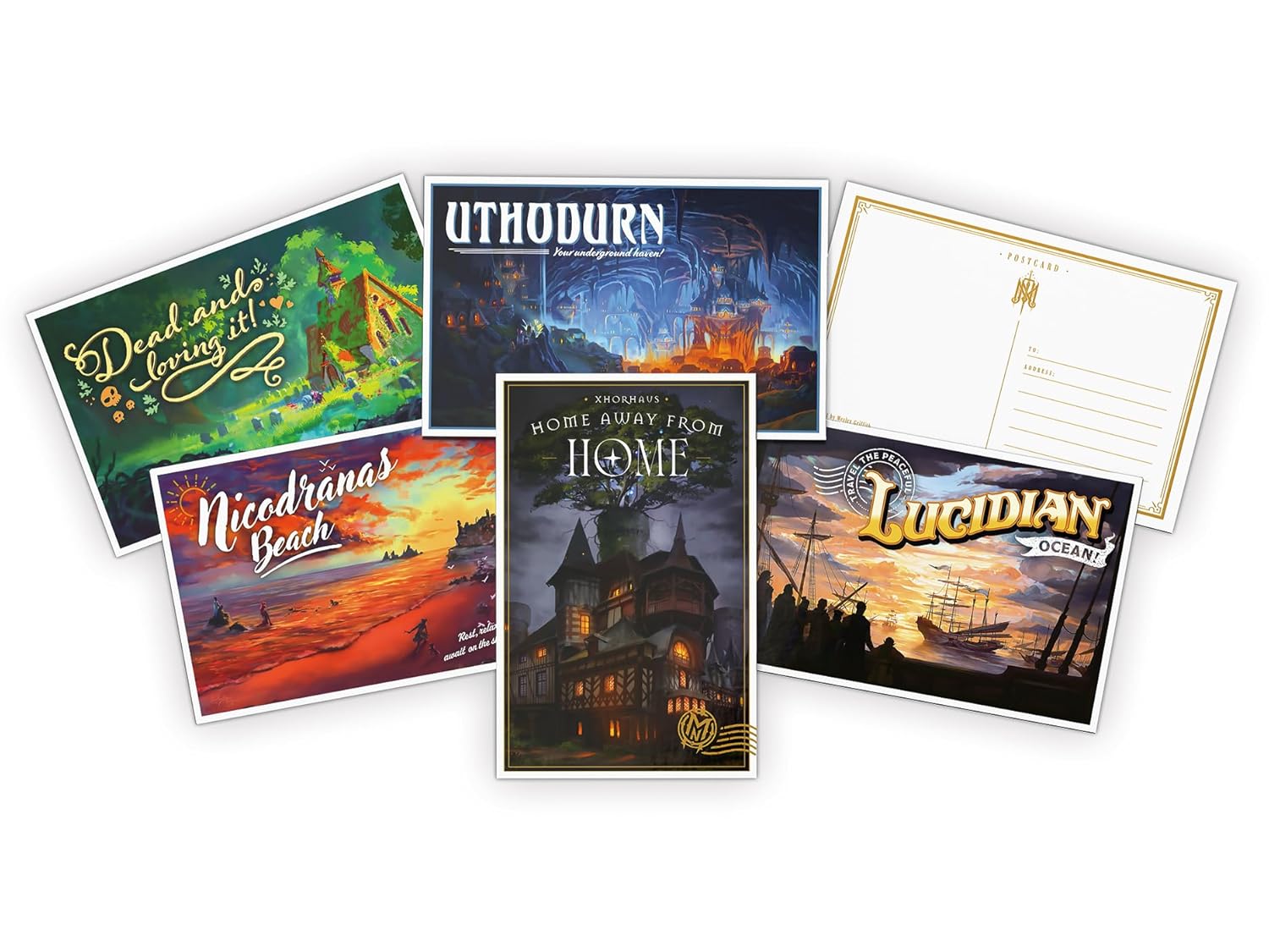 - Foil-stamped envelope containing: Five postcards featuring art from inside the book;