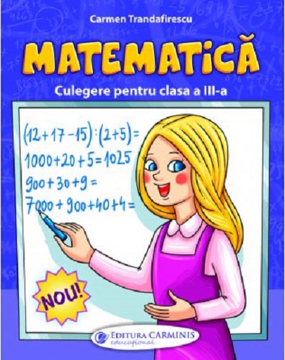 Culegerea de matematica pentru clasa a III-a este elaborata conform programei scolare in vigoare. Lucrarea respecta succesiunea lectiilor din noile manuale si este utila atat elevilor, cat si cadrelor didactice si parintilor. Continuturile culegerii sunt ordonate progresiv, pe niveluri diferite de dificultate, avand rolul de a dezvolta competentele specifice, dar si gandirea logica si spiritul de observatie.