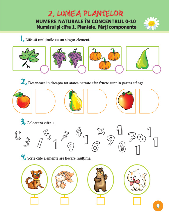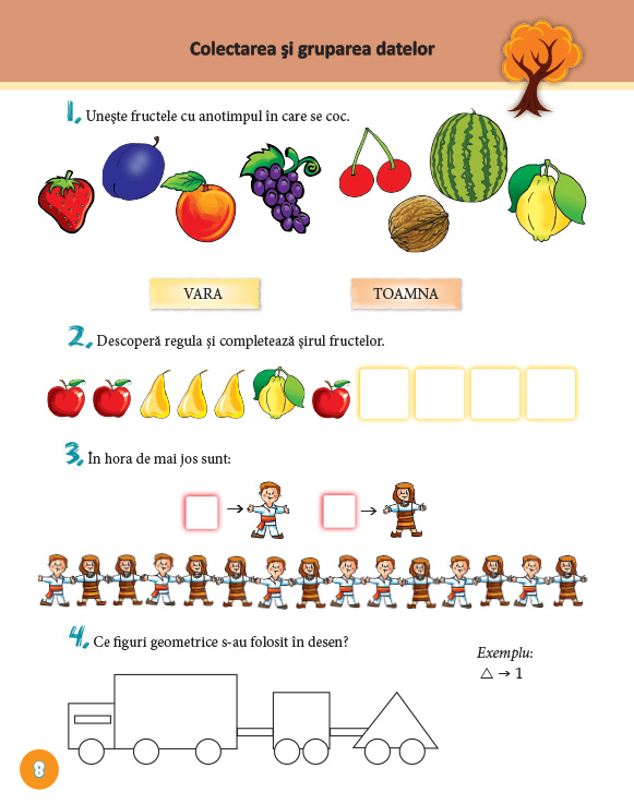– exerciţiile şi problemele propuse au sarcinile de lucru uşor de identificat şi de înţeles, prin suportul intuitiv oferit de ilustraţii, astfel încât şcolarii să se acomodeze cu uşurinţă la noile sarcini;