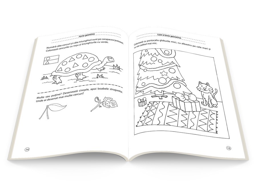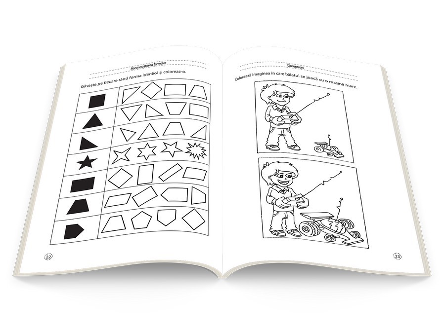 Conține activități de recunoaștere a culorilor (primare și secundare), dimensiunilor și formelor geometrice, precum și de dezvoltare a motricității fine prin exersarea semnelor grafice.
