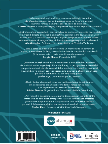 Cartea analizeaza managementul si cultura companiilor in functie de tipul lor (companii antreprenoriale romanesti, afaceri internationale de familie cu traditie de mai multe generatii si corporatii multinationale) si dezvaluie legaturile dintre stadiile managementului eticii din cadrul acestora, increderea in top management si loialitatea angajatilor fata de ele. In afara de interesul stiintific general, studiul releva insight-uri foarte interesante despre managementul si specificul cultural al organizatiilor for profit din Romania, despre cultura integritatii impartasita de catre angajati, increderea si loialitatea acestora, modul in care se raporteaza la management, la organizatie, la munca si despre cai relevante si inedite de a le imbunatati.