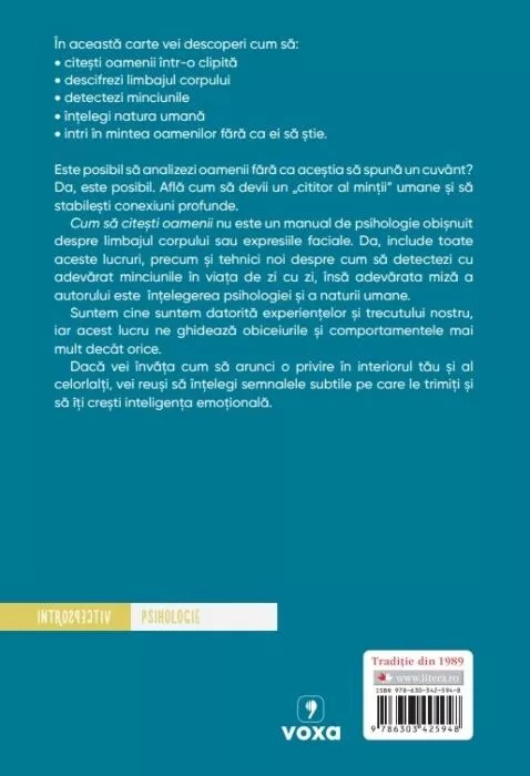 Cum să citești oamenii nu este un manual de psihologie obișnuit despre limbajul corpului sau expresiile faciale. Da, include toate aceste lucruri, precum și tehnici noi despre cum să detectezi cu adevărat minciunile în viața de zi cu zi, însă adevărata miză a autorului este înțelegerea psihologiei și a naturii umane. Suntem cine suntem datorită experiențelor și trecutului nostru, iar acest lucru ne ghidează obiceiurile și comportamentele mai mult decât orice.