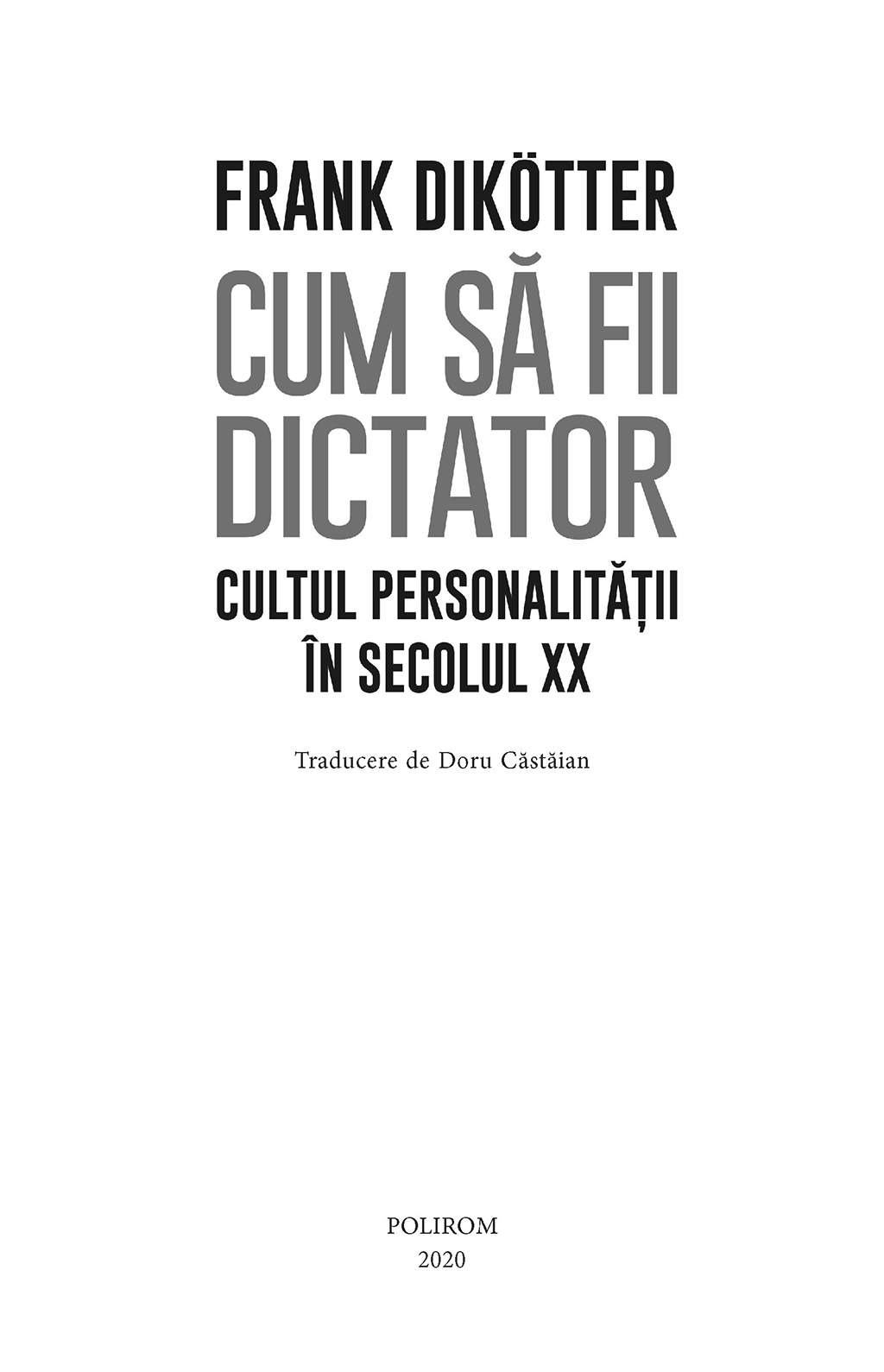 De‑a lungul întregului secol XX, sute de milioane de oameni au fost nevoiţi să-şi ovaţioneze dictatorii, ajunşi de multe ori la conducere prin strategii axate în mare măsură pe manipulări şi epurări sîngeroase. Dar, pentru a se menţine la putere, aceştia s-au bazat de obicei pe teroare şi cultul personalităţii, un fenomen aberant ce-şi are locul în însăşi inima tiraniei. Cum să fii dictator face o analiză detaliată a cultului personalităţii şi propagandei din jurul unora dintre cei mai mari dictatori ai secolului trecut, de la Hitler şi Stalin la Mao Zedong şi Kim Ir Sen sau Ceauşescu şi Haile Mariam Mengistu. Pe baza unei ample cercetări arhivistice şi a unui studiu aprofundat, Frank Dikötter schiţează un uimitor portret al dictaturii, evidenţiind modul în care aceşti oameni de stat au reuşit să-şi construiască şi să-şi menţină regimurile, creînd impresia că se bucură de sprijinul maselor.