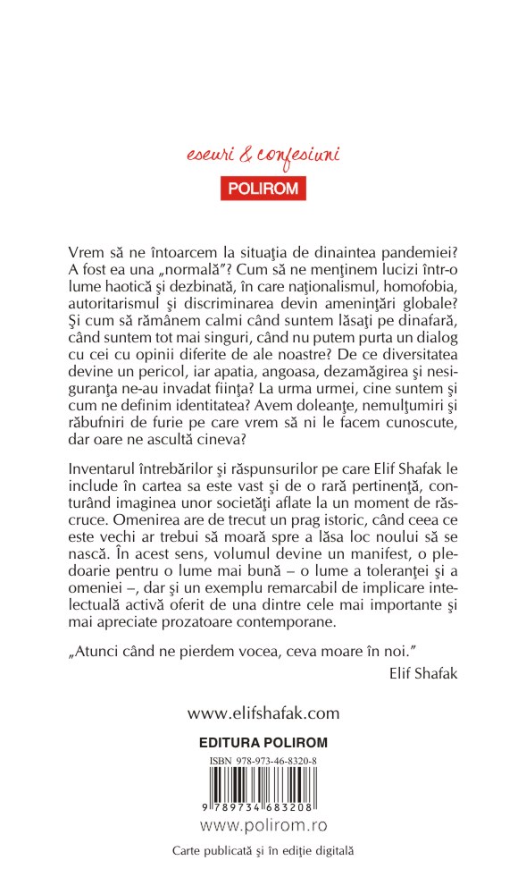 „Atunci cînd ne pierdem vocea, ceva moare în noi.” (Elif Shafak)