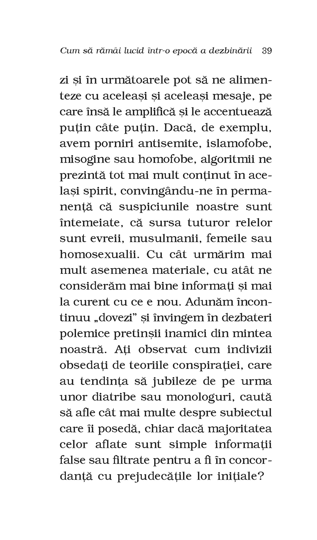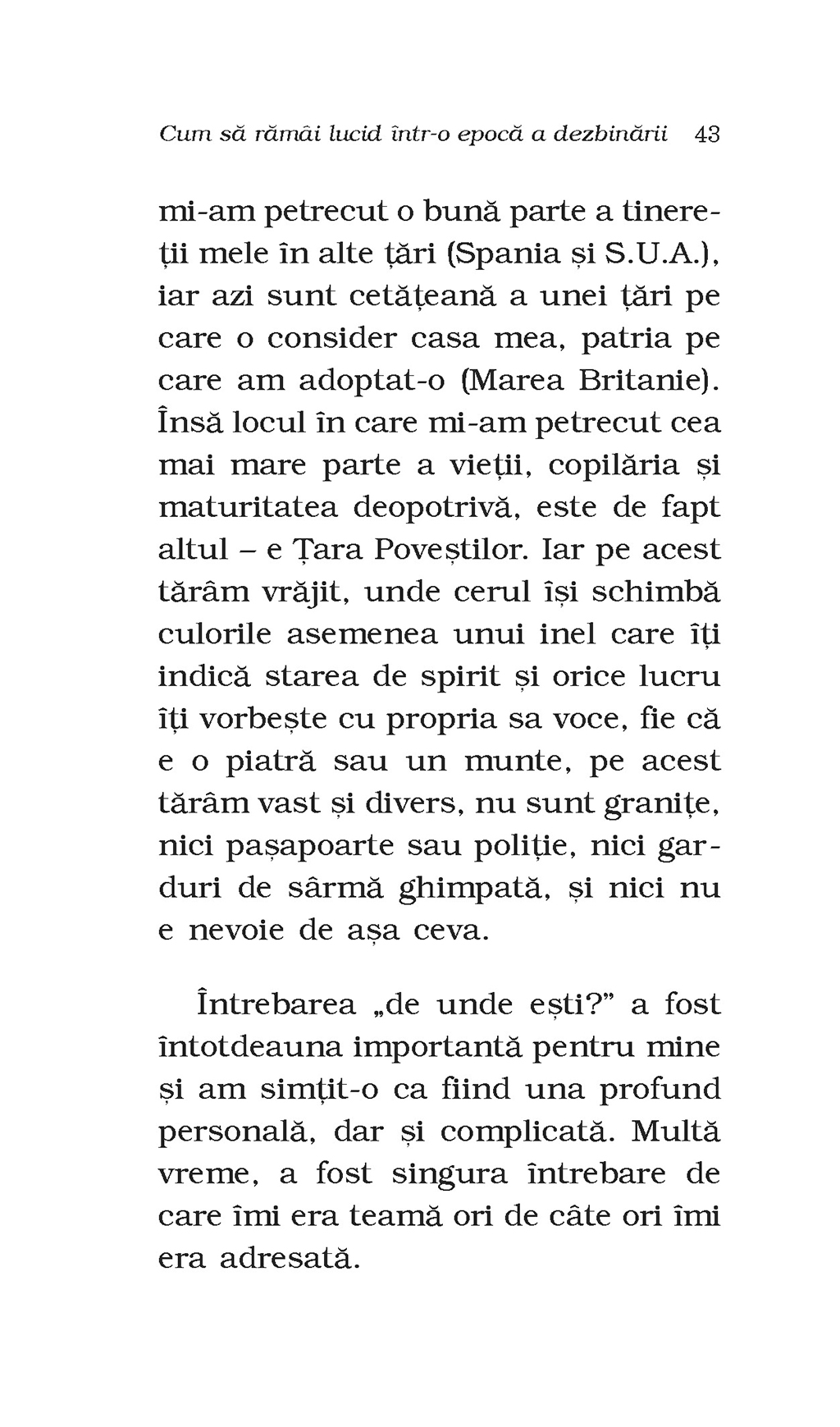 Inventarul întrebărilor şi răspunsurilor pe care Elif Shafak le include în cartea sa este vast şi de o rară pertinenţă, conturînd imaginea unor societăţi aflate la un moment de răscruce. Omenirea are de trecut un prag istoric, cînd ceea ce este vechi ar trebui să moară spre a lăsa loc noului să se nască. În acest sens, volumul devine un manifest, o pledoarie pentru o lume mai bună – o lume a toleranţei şi a omeniei –, dar şi un exemplu remarcabil de implicare intelectuală activă oferit de una dintre cele mai importante şi mai apreciate prozatoare contemporane.