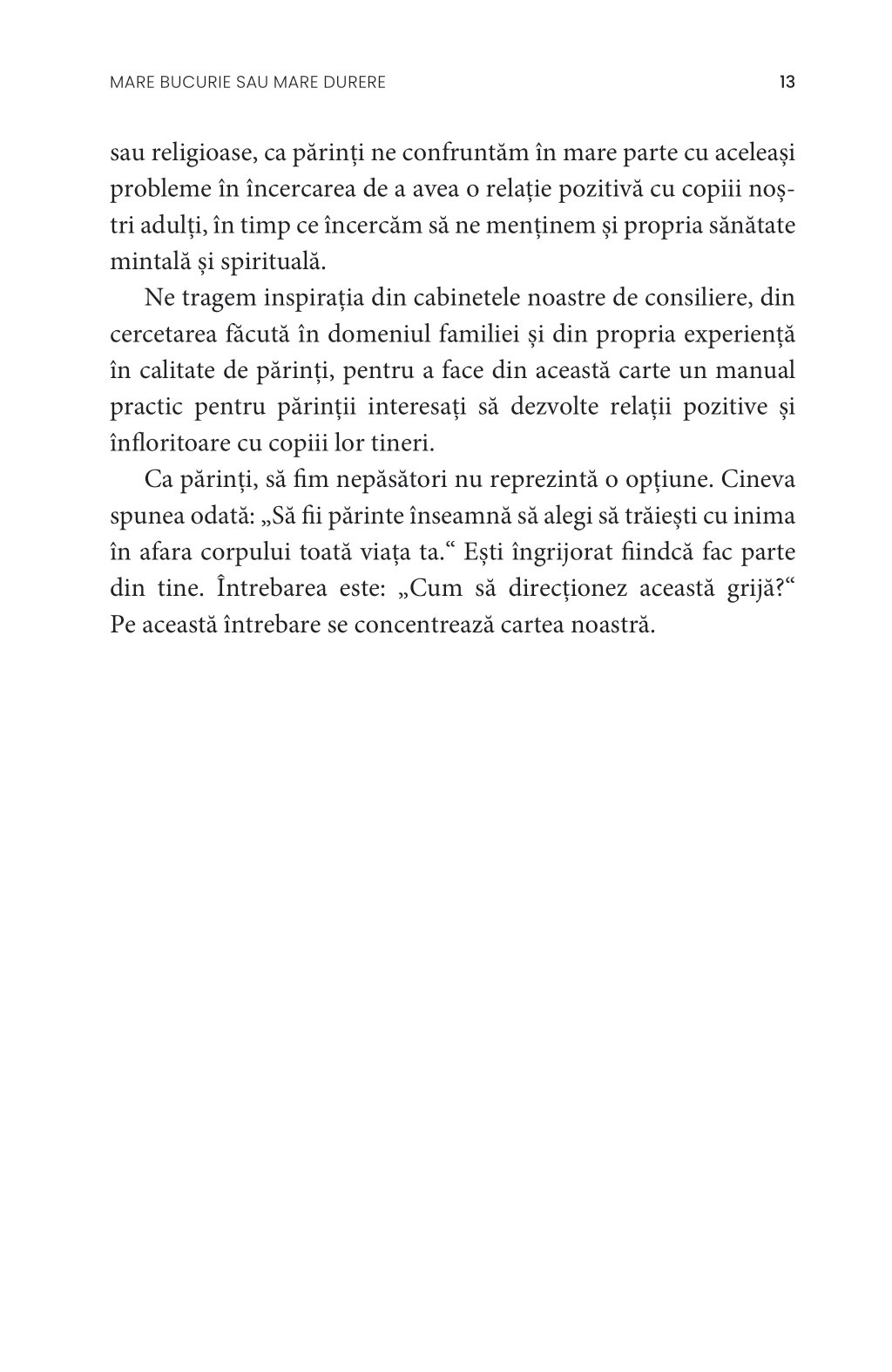 Ne tragem inspirația din cabinetele noastre de consiliere, din cercetarea făcută în domeniul familiei și din propria experiență în calitate de părinți, pentru a face din această carte un manual practic pentru părinții interesați să dezvolte relații pozitive și înfloritoare cu copiii lor tineri.