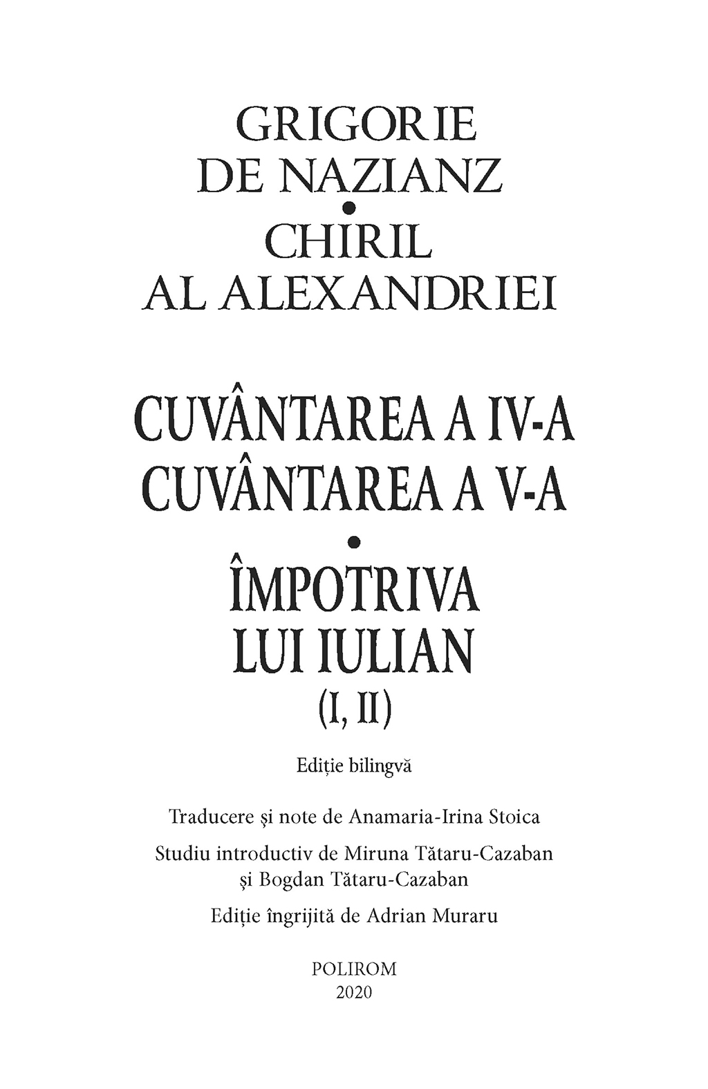 Cuvantarea a IV-a. Cuvantarea a V-a. Impotriva lui Iulian (I, II). Editie bilingva