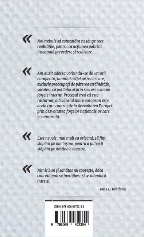 Am auzit adesea vorbindu-se de «marii europeni», numind astfel pe aceia care, exclusiv preocupaţi de părerea străinătăţii, socotesc că pot înlocui prin succese externe forţele interne. Procesul cred că este răsturnat, adevăratul mare european este acela care contribuie la dezvoltarea Europei prin dezvoltarea forţelor naţionale pe care le reprezintă.