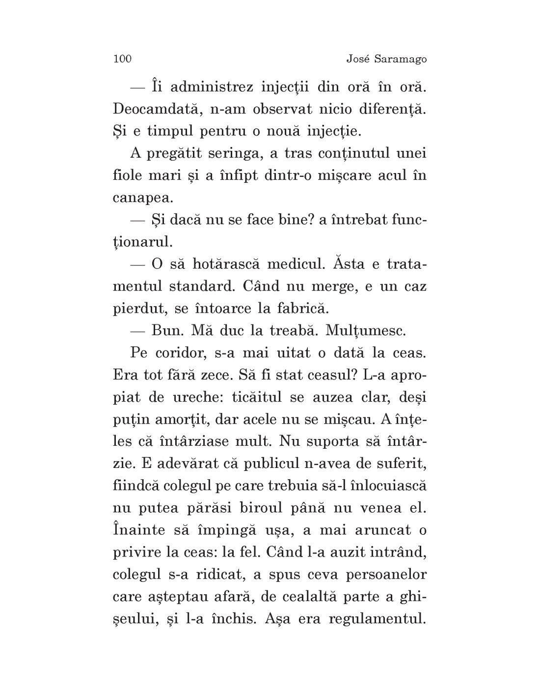 „Asemenea lui Faulkner, Saramago este un scriitor atât de stăpân pe resursele și pe scopul său ultim, încât poate insufla viață oricărei povești, oricât de neverosimilă ar părea la prima vedere.”
