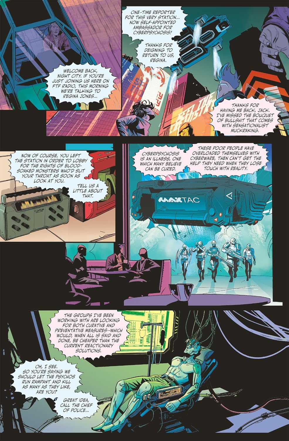 Finally, a MaxTac squad is divided when their new leader escalates to the extremes of their cyberpsycho opponents in Psycho Squad. Written by Bartosz Sztybor (Cyberpunk 2077: Blackout, Cyberpunk 2077: You Have My Word), Tomasz Marchewka, lead writer of the Cyberpunk 2077 expansion Phantom Liberty, and Dan Watters (Batman: Detective Comics, Coffin Bound, Home Sick Pilots) with art by Jakub Rebelka (Judas, When I Lay My Vengeance Upon Thee), Jake Elphick (WWE: NXT Takeover), Tommaso Bennato (Andrzej Sapkowski's The Witcher: The Edge of the World), and Kieran McKeown (Crime Syndicate, Judge Dredd). Collects Cyberpunk 2077: XOXO #1-#4, Cyberpunk 2077: Kickdown #1-#4, and Cyberpunk 2077: Psycho Squad #1-#4, and features a cover gallery and expanded sketchbook section!