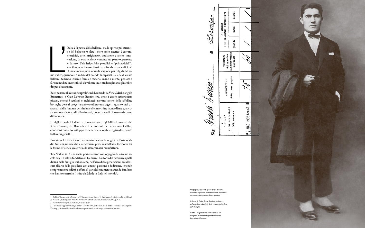 The book is published on the occasion of the 100th anniversary of Damiani, a historic goldsmith company from Valenza (Alessandria - Italy), whose creations, appreciated all over the world, represent one of the excellences of Made in Italy.