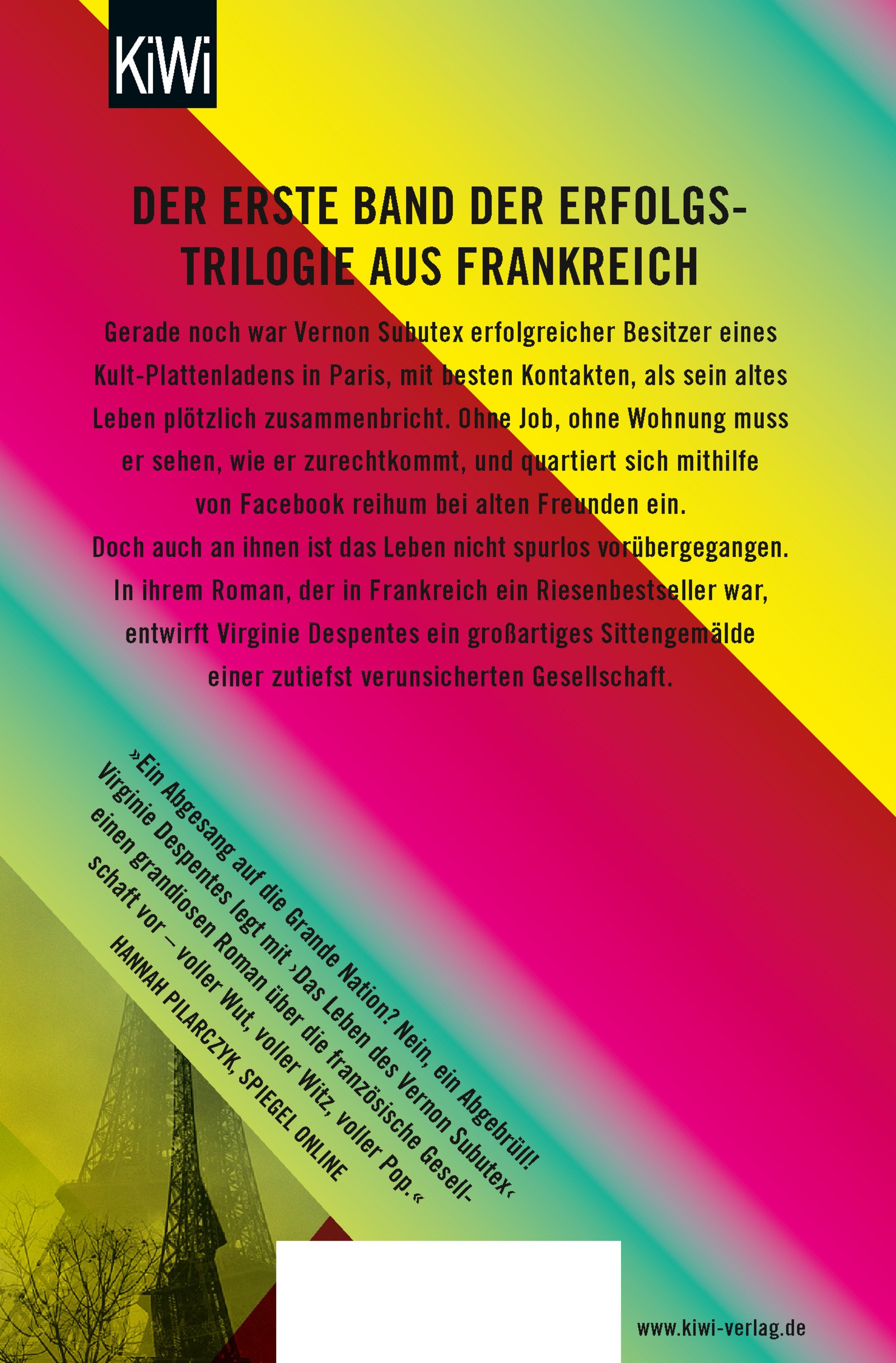 Wer ist Vernon Subutex? Eine urbane Legende, der letzte Zeuge einer Welt von Sex, Drugs und Rock ‘n‘ Roll, einer, mit dem es unsere Zeit nicht gut meint. Gerade noch Besitzer eines Kult-Plattenladens mit Erfolg und besten Kontakten, steht er nun plötzlich auf der Straße und quartiert sich mithilfe von Facebook und einer Notlüge reihum bei alten Freunden und Weggefährten ein – so beginnt eine Reise zu den Abgründen einer zutiefst verunsicherten Gesellschaft. Es entsteht ein grandioses Sittengemälde unserer Zeit, das kein gesellschaftliches Thema unberührt lässt, die Islamismusdebatte ebenso wenig wie den Aufstieg der Rechten. Als der Roman 2015 in Frankreich erschien, führte er monatelang die Bestsellerlisten an und machte seine Autorin zu einer der wichtigsten und gefragtesten Schriftstellerinnen des Landes. Mit ihrer Subutex-Trilogie ist Virginie Despentes eine »menschliche Komödie« unserer Zeit gelungen – der Vergleich mit Balzac ist nicht zu hoch gegriffen.