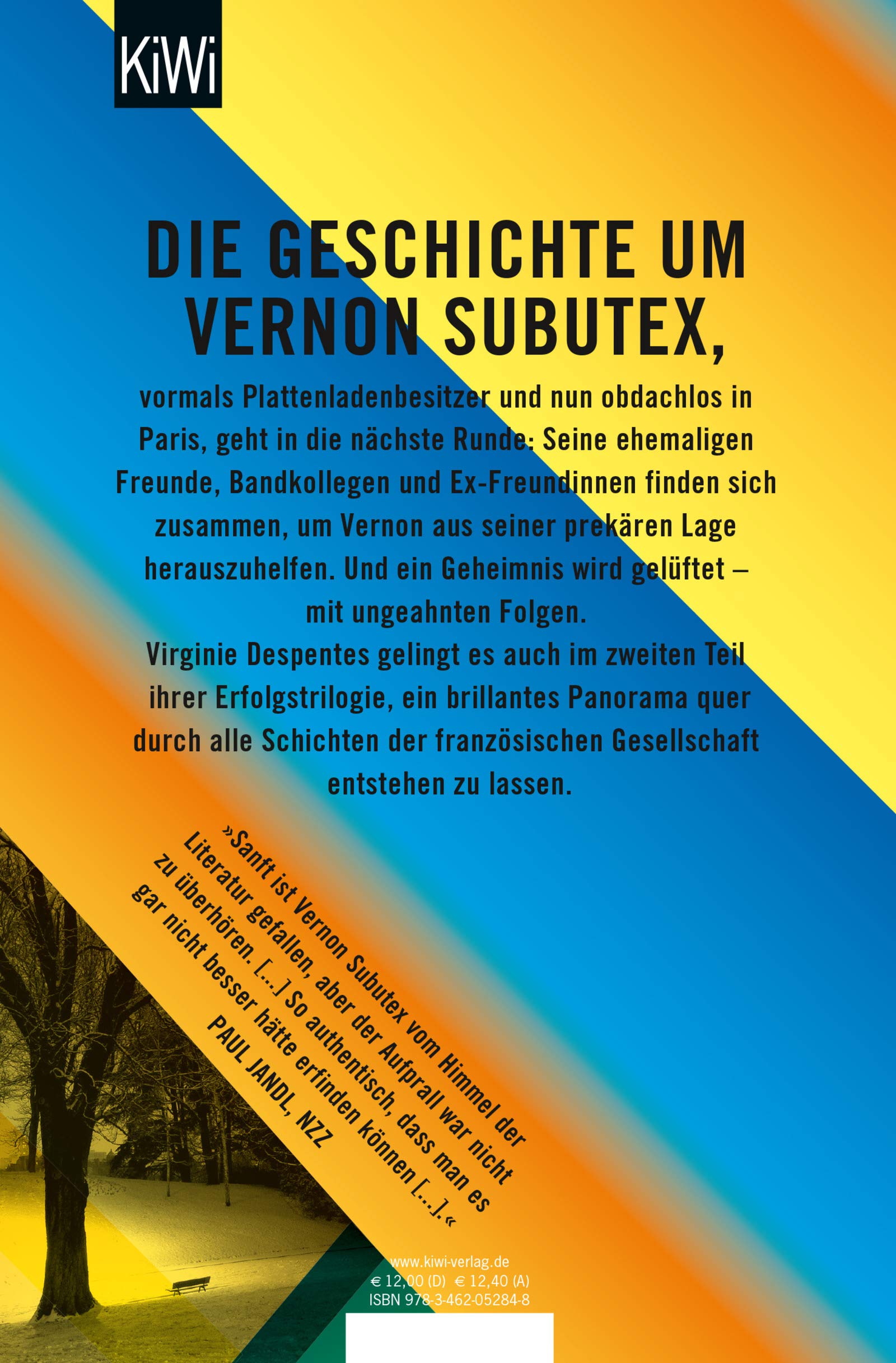 Die Geschichte um den sympathischen Loser Vernon Subutex geht weiter: Band zwei erzählt davon, wie seine Freunde sich zusammentun, um ihrem Kumpel zu helfen. Und ein Geheimnis wird gelüftet.Vernon Subutex ist inzwischen obdachlos und lebt auf einer Parkbank in den Buttes Chaumont. Während er versucht, sich in seinem neuen Leben einzurichten, machen sich seine Freunde Sorgen um ihn. Über eine WhatsApp-Gruppe halten sie Kontakt und machen sich auf die Suche. So finden sich nach und nach die unterschiedlichsten Leute zusammen, die aber eines verbindet: die Freundschaft zu Vernon. Das Café Rosa Bonheur am Park wird zu einer Art Hauptquartier. Als dann auch noch die lange verschwundenen Videobänder des verstorbenen Alex Bleach wieder auftauchen, wird es höchste Zeit, den verlorenen Freund zu finden. Virginie Despentes hat Handlung und Personal souverän im Griff und lässt dabei abermals ein brillantes Gesellschaftspanorama entstehen.
