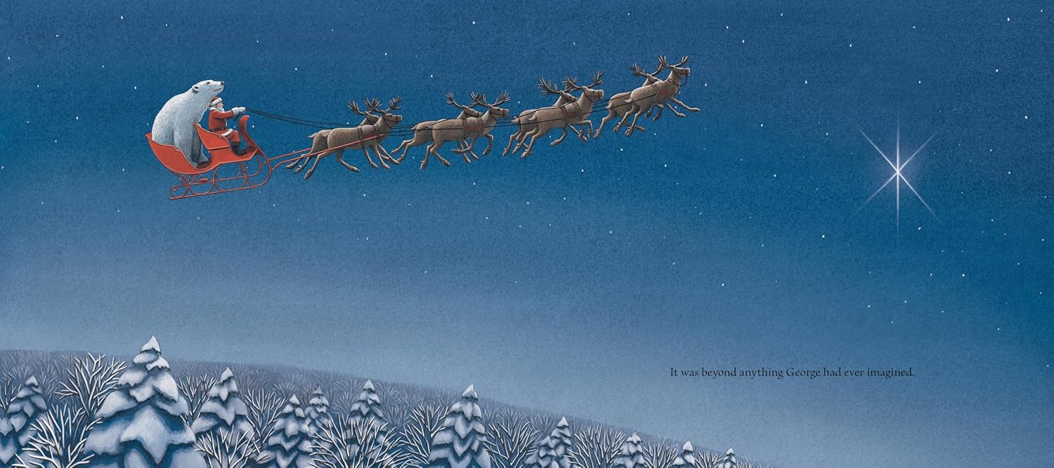 One bright night just before Christmas, Dasher the reindeer is out admiring the stunning colours of the northern lights when she meets George, a sweet polar bear.