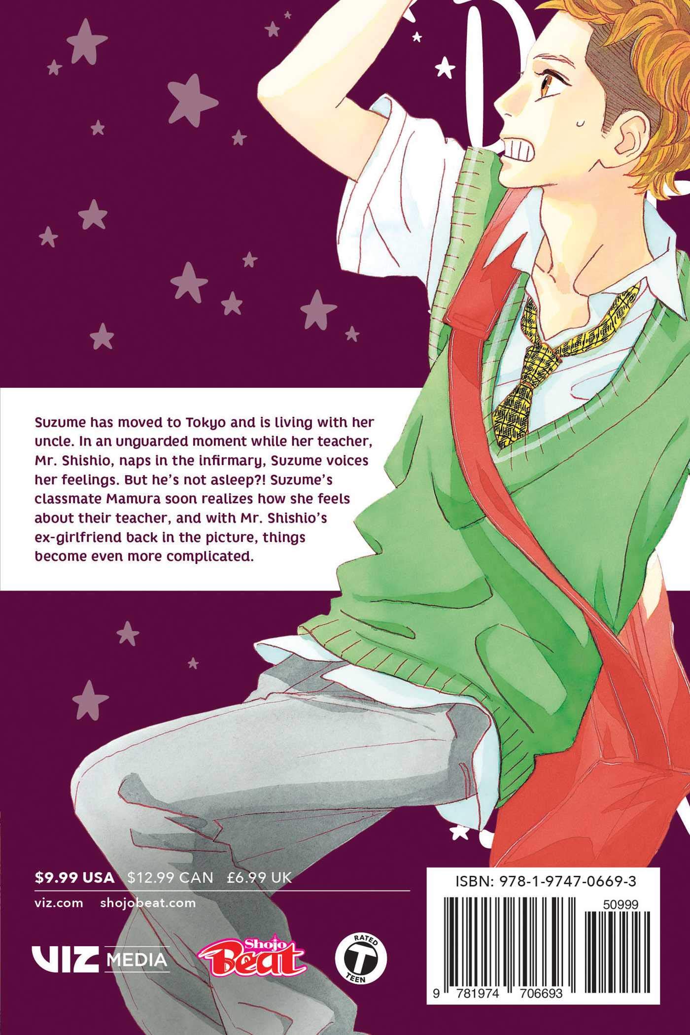 Suzume has moved to Tokyo and is living with her uncle. In an unguarded moment while her teacher, Mr. Shishio, naps in the infirmary, Suzume voices her feelings. But h's not asleep?! Suzume's classmate Mamura soon realizes how she feels about their teacher, and with Mr. Shishio’s ex-girlfriend back in the picture, things become even more complicated.