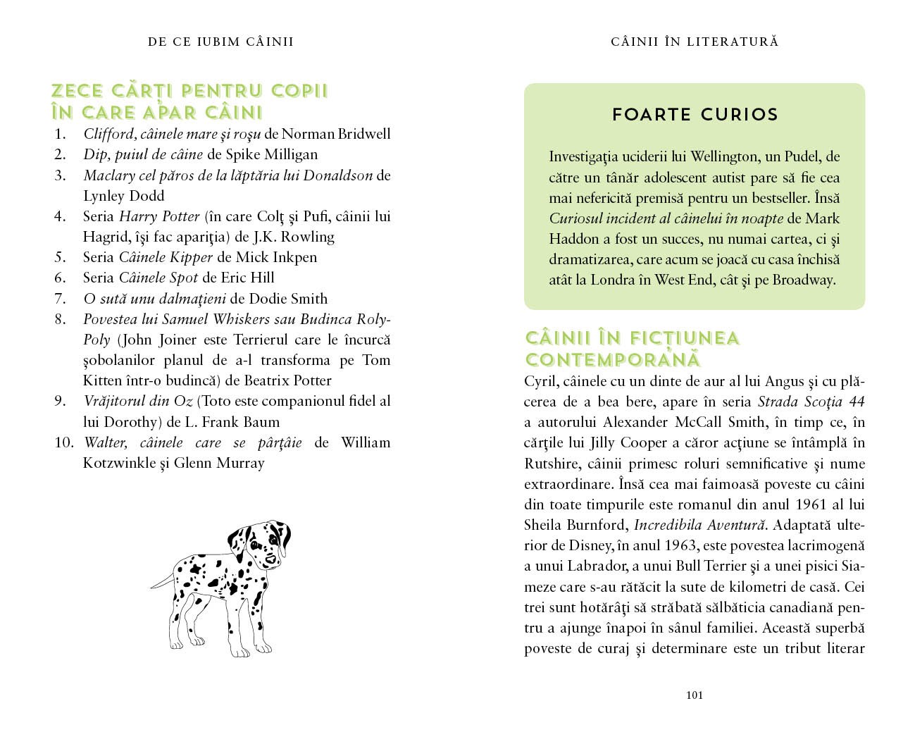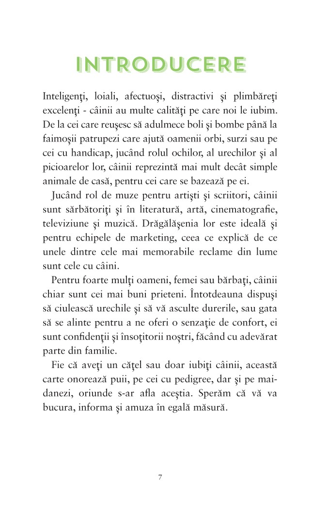 După reprizele de joacă împreună cu patrupedul, în momentele de pauză pe care le veți petrece citind această minunată carte, veți zâmbi amuzați de poveștile încântătoare despre acești „responsabili” cu buna dispoziție. Citatele minunat alese vă vor confirma, dacă mai era nevoie, că momentul în care ați decis să creșteți un câine a fost cea mai bună alegere. Atât pentru confortul lui, cât și pentru sufletul dumneavoastră.