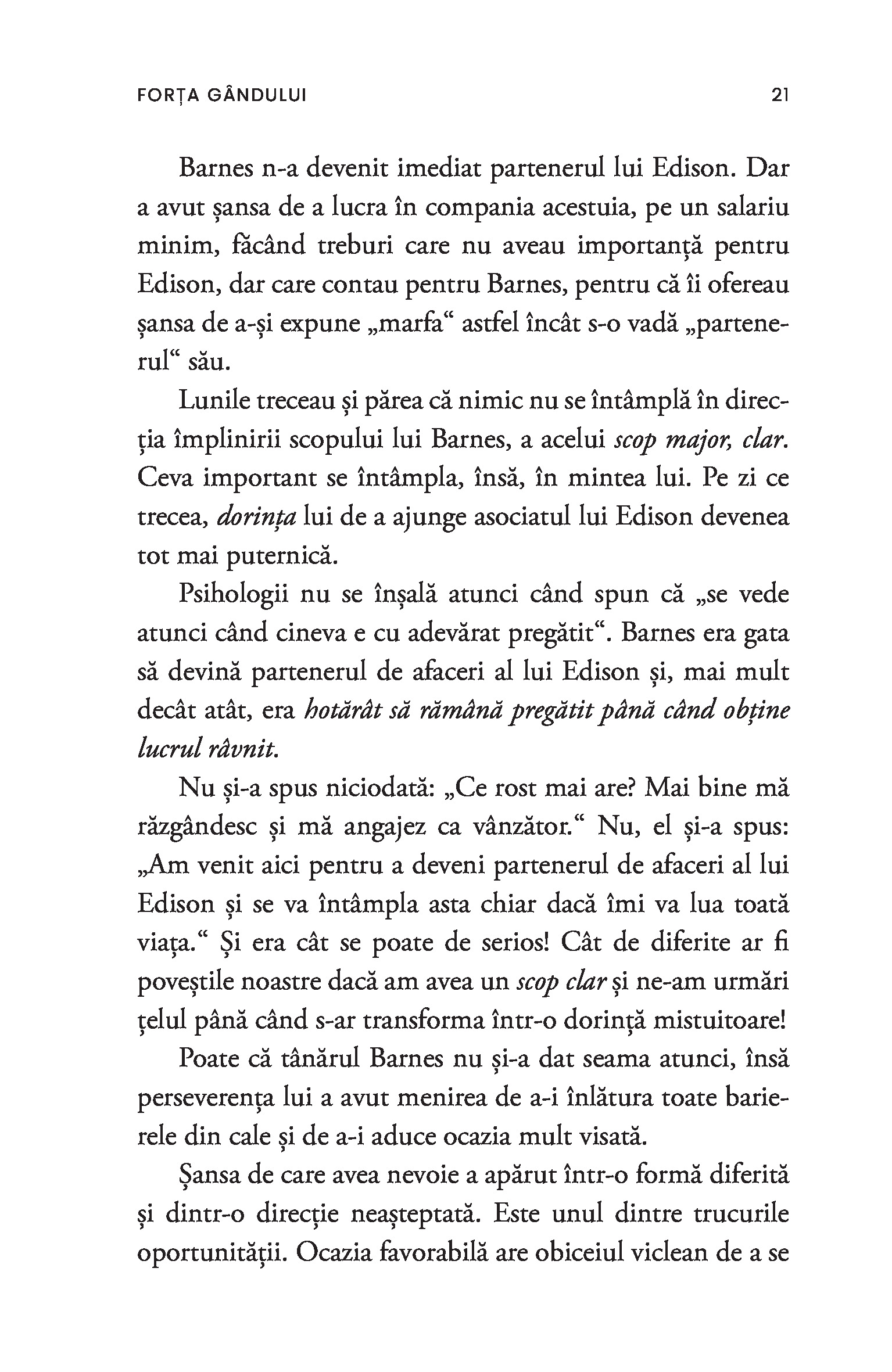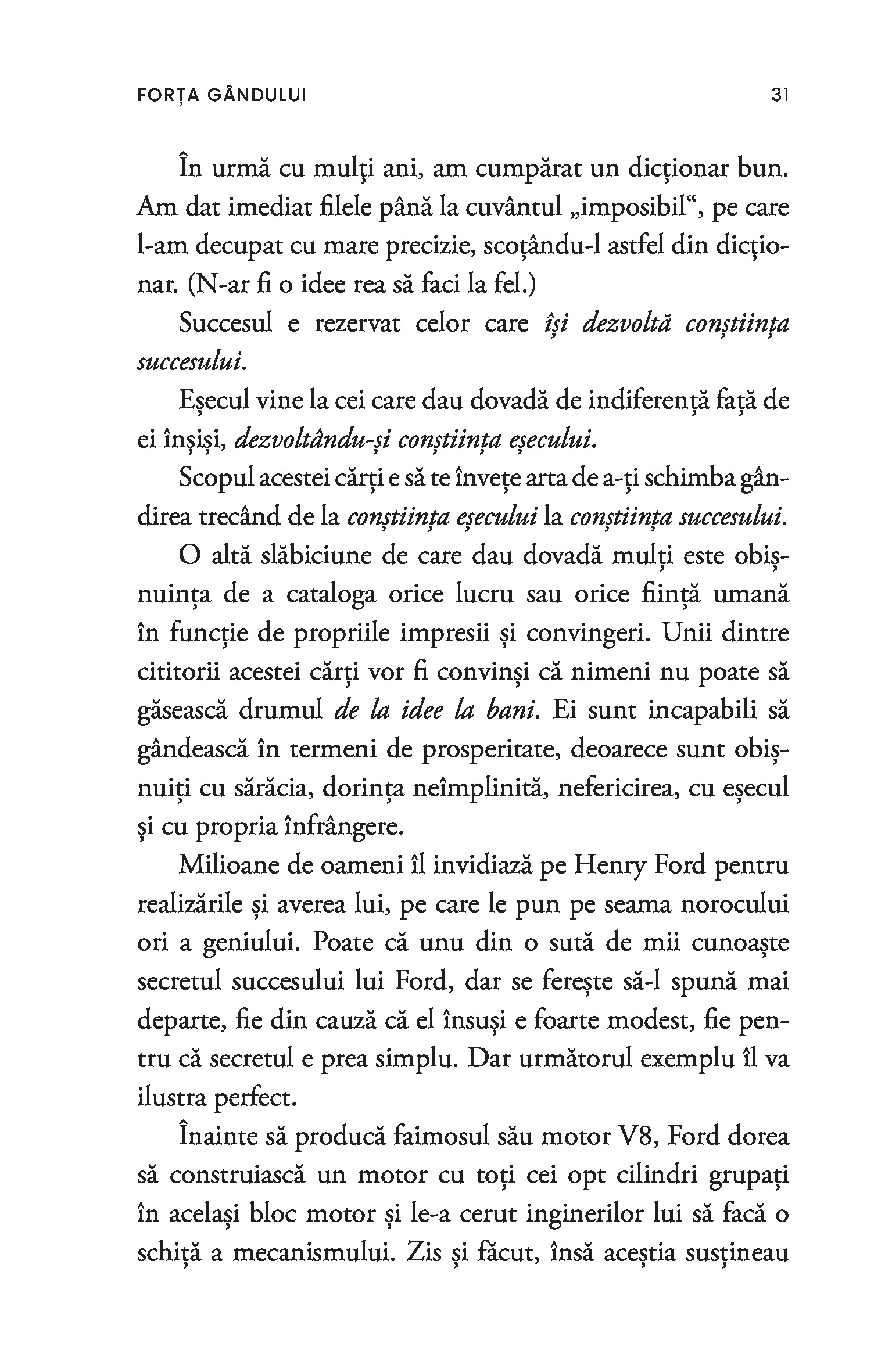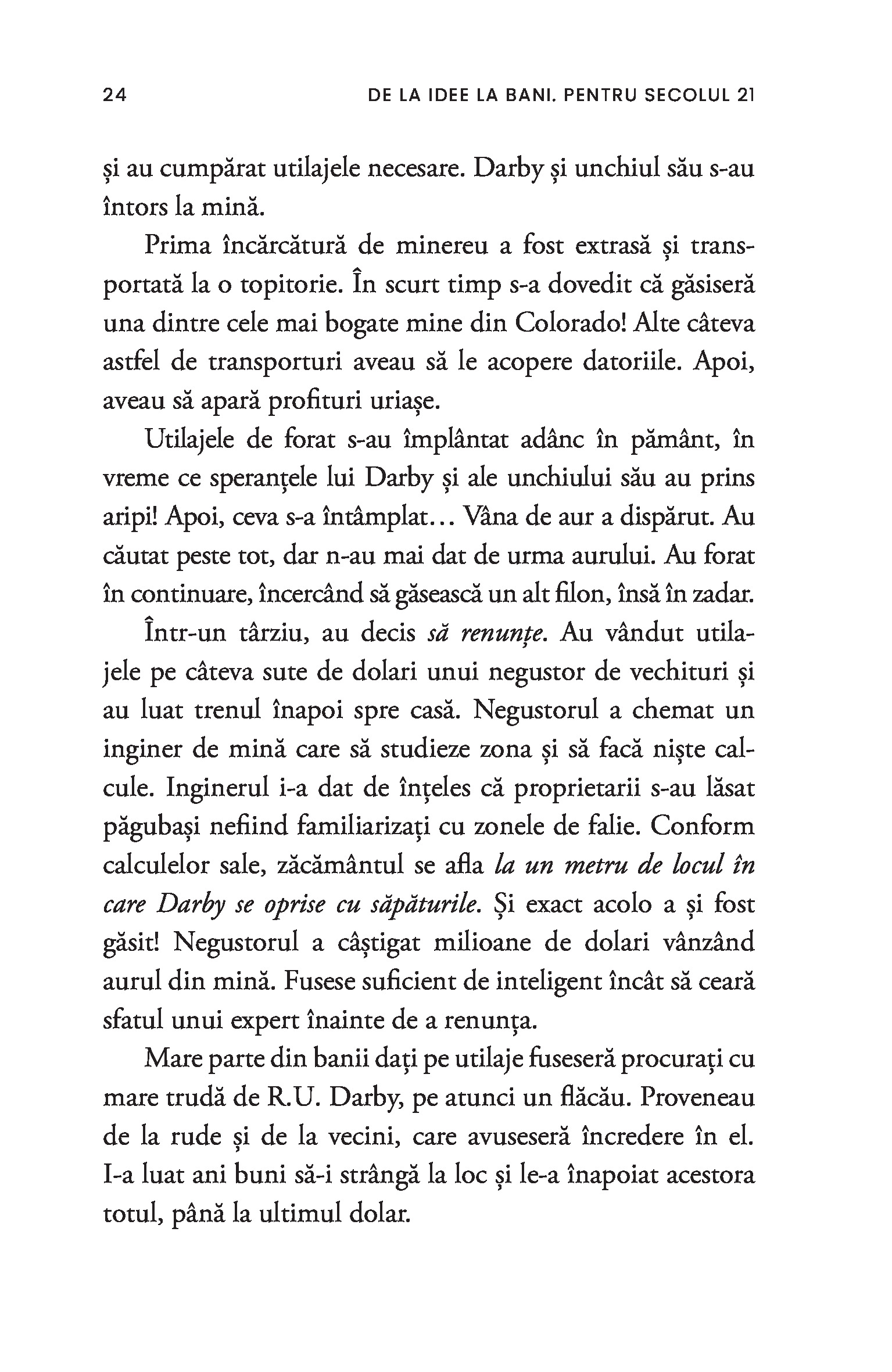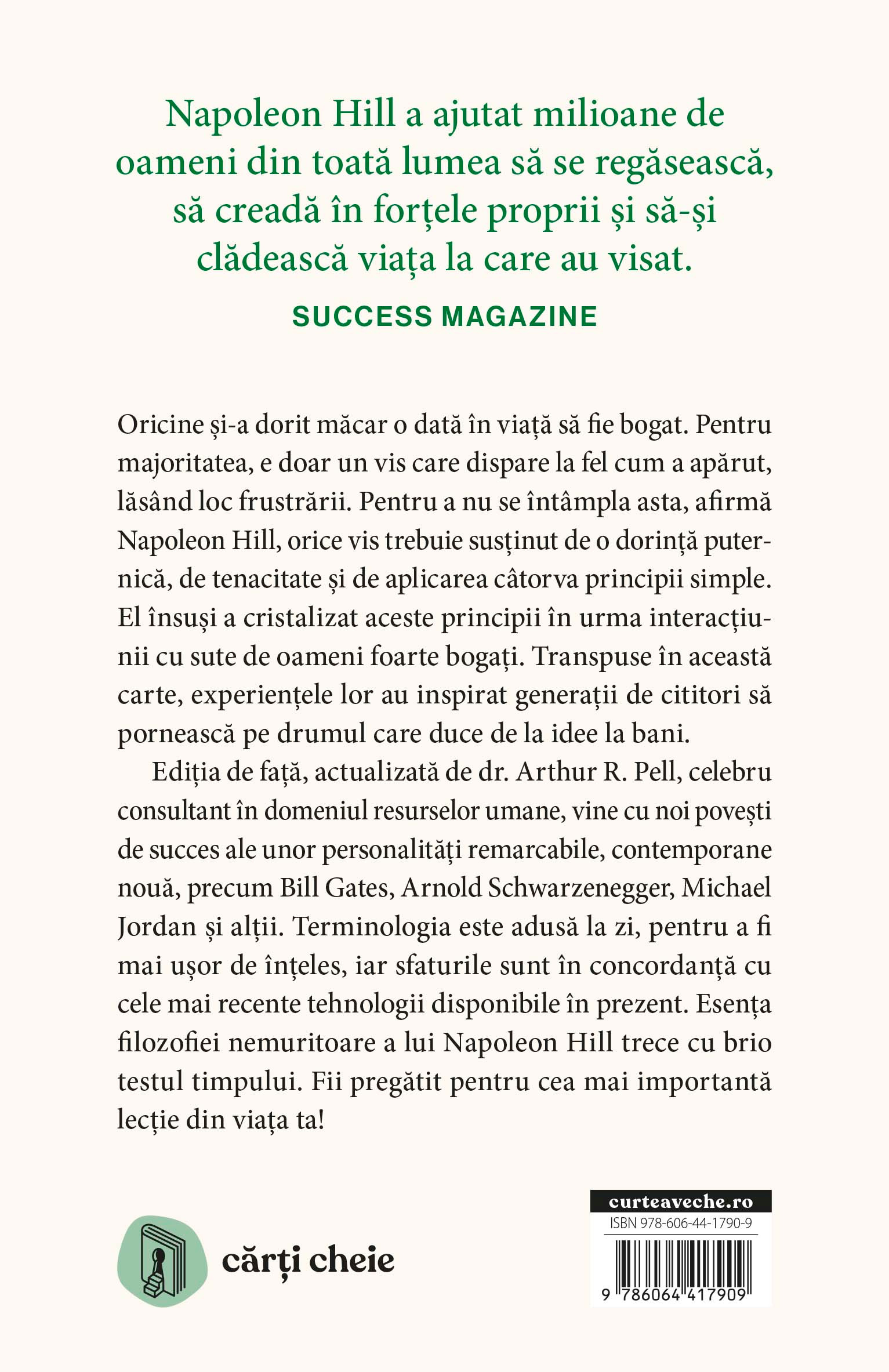 Transpuse în această carte, experiențele lor au inspirat generații de cititori să pornească pe drumul care duce de la idee la bani. Ediția de față, actualizată de dr. Arthur R. Pell, celebru consultant în domeniul resurselor umane, vine cu noi povești de succes ale unor personalități remarcabile, contemporane nouă, precum Bill Gates, Arnold Schwarzenegger, Michael Jordan și alții. Terminologia este adusă la zi, pentru a fi mai ușor de înțeles, iar sfaturile sunt în concordanță cu cele mai recente tehnologii disponibile în prezent.