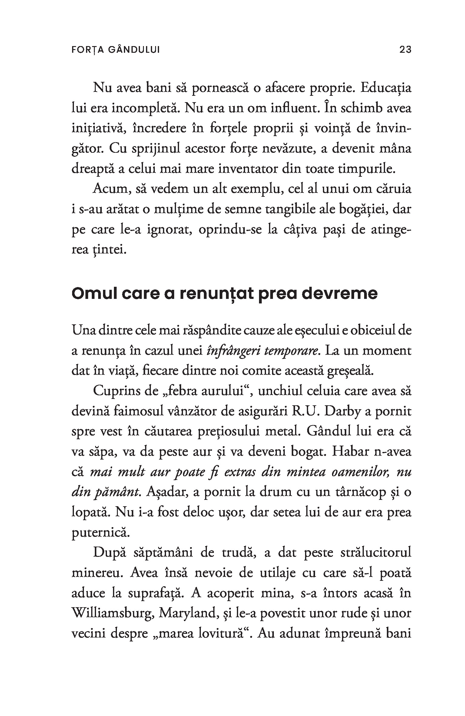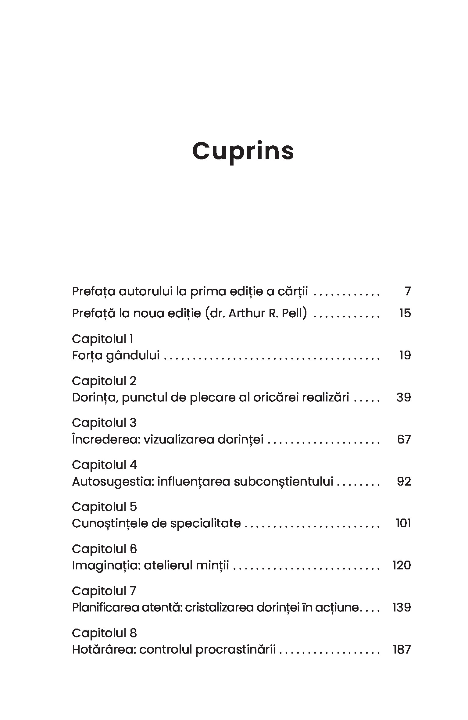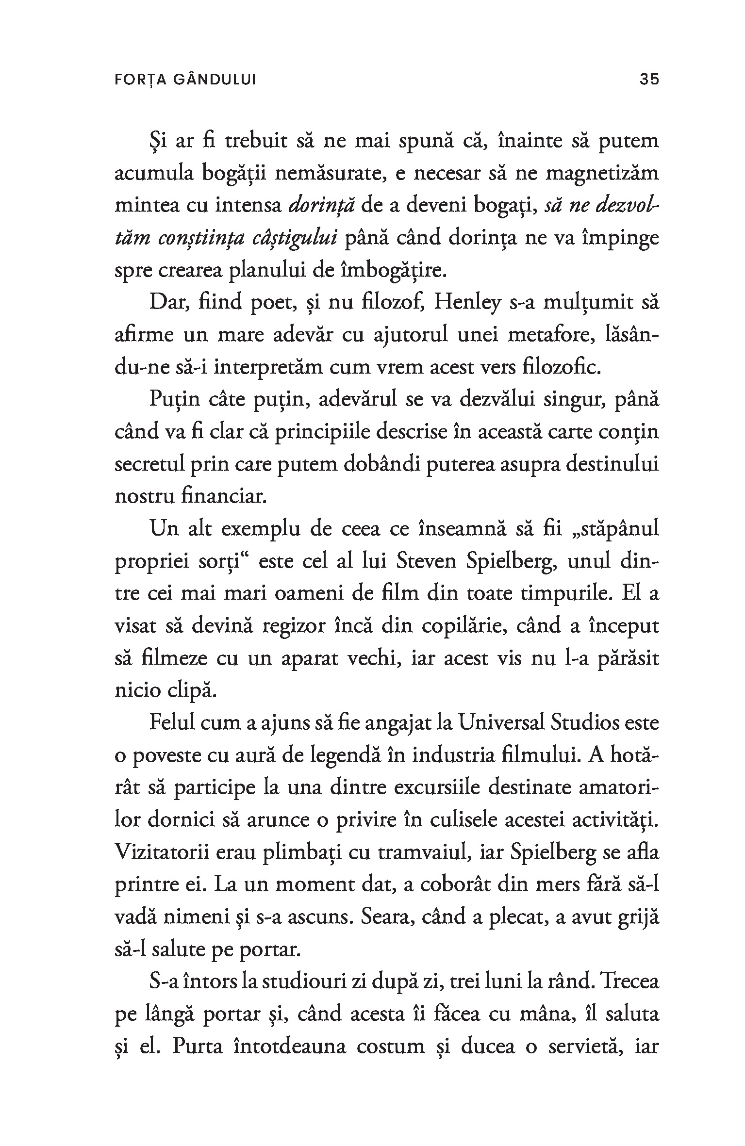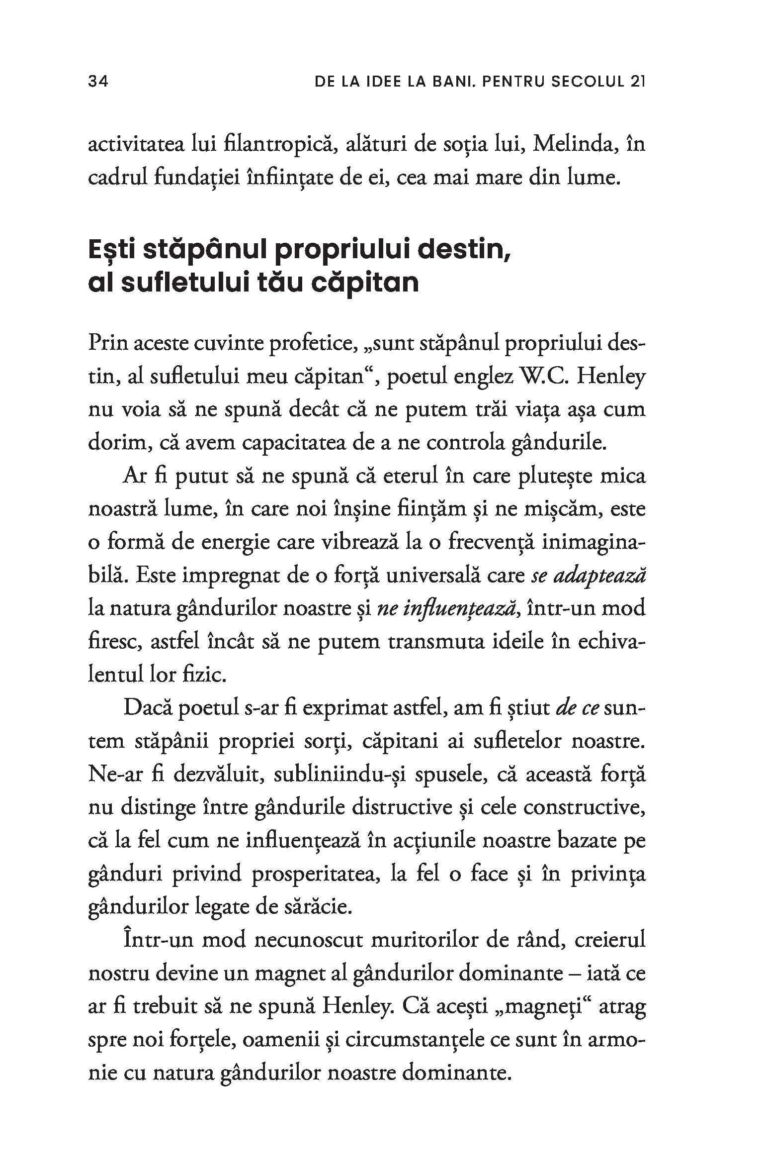 Transpuse în această carte, experiențele lor au inspirat generații de cititori să pornească pe drumul care duce de la idee la bani. Ediția de față, actualizată de dr. Arthur R. Pell, celebru consultant în domeniul resurselor umane, vine cu noi povești de succes ale unor personalități remarcabile, contemporane nouă, precum Bill Gates, Arnold Schwarzenegger, Michael Jordan și alții. Terminologia este adusă la zi, pentru a fi mai ușor de înțeles, iar sfaturile sunt în concordanță cu cele mai recente tehnologii disponibile în prezent.